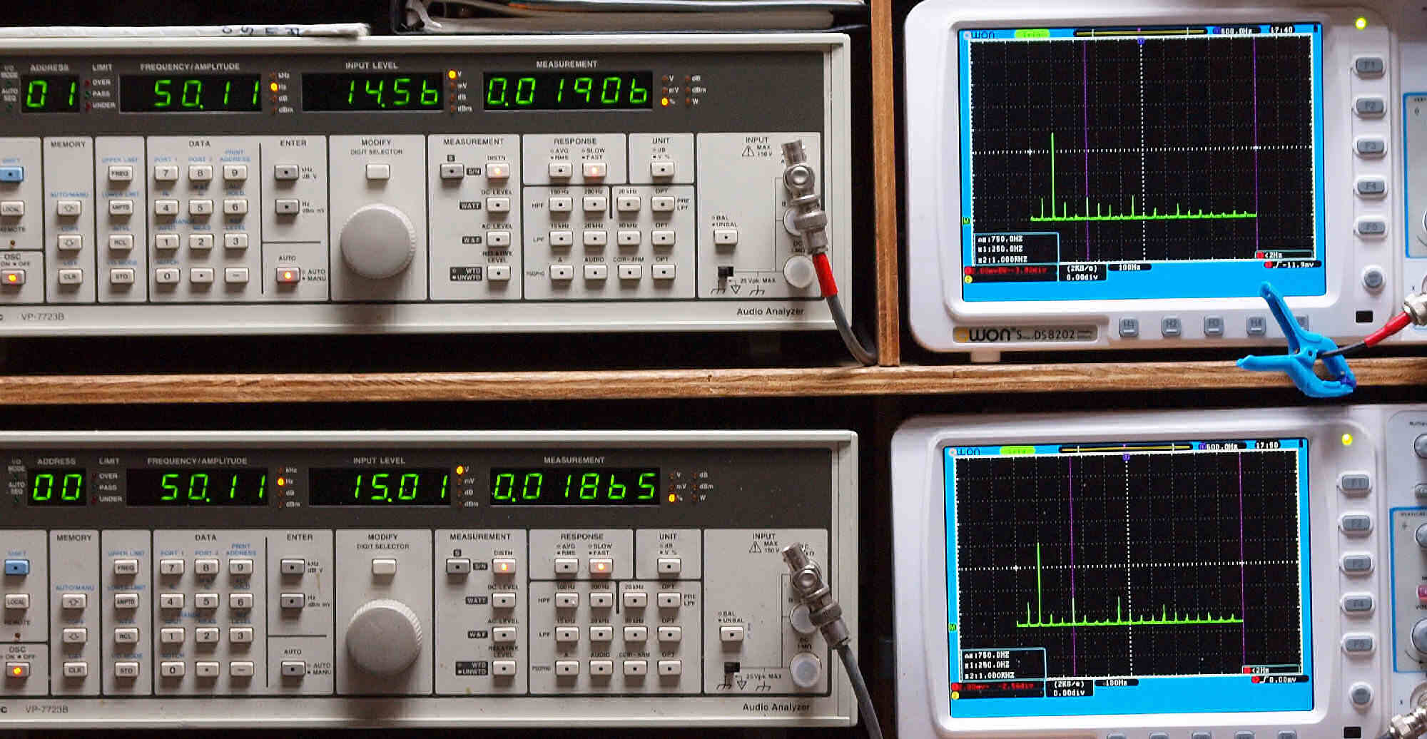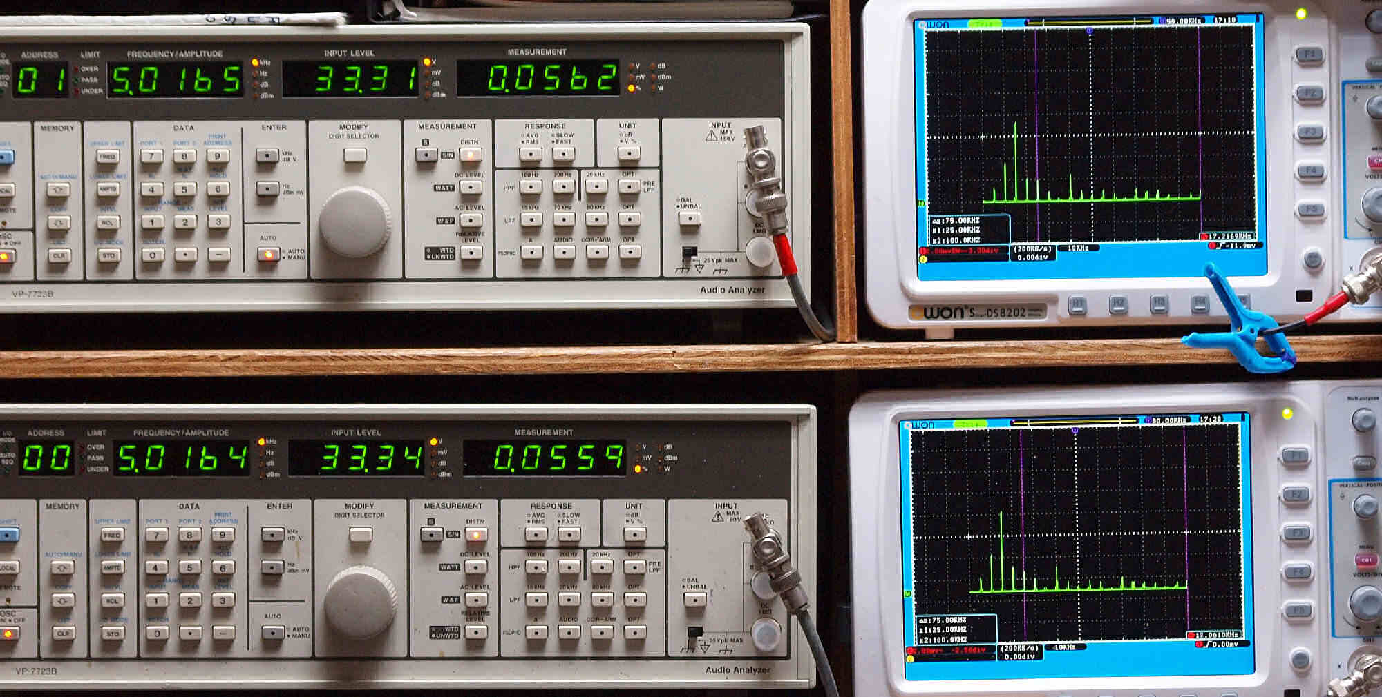 よって、ダイアル設定出力レベルより低くなります。測定機器の仕様や整備の様子はこちら、「VP−7723B」「VP−7201A」。 FFT画面の見方はこちら。