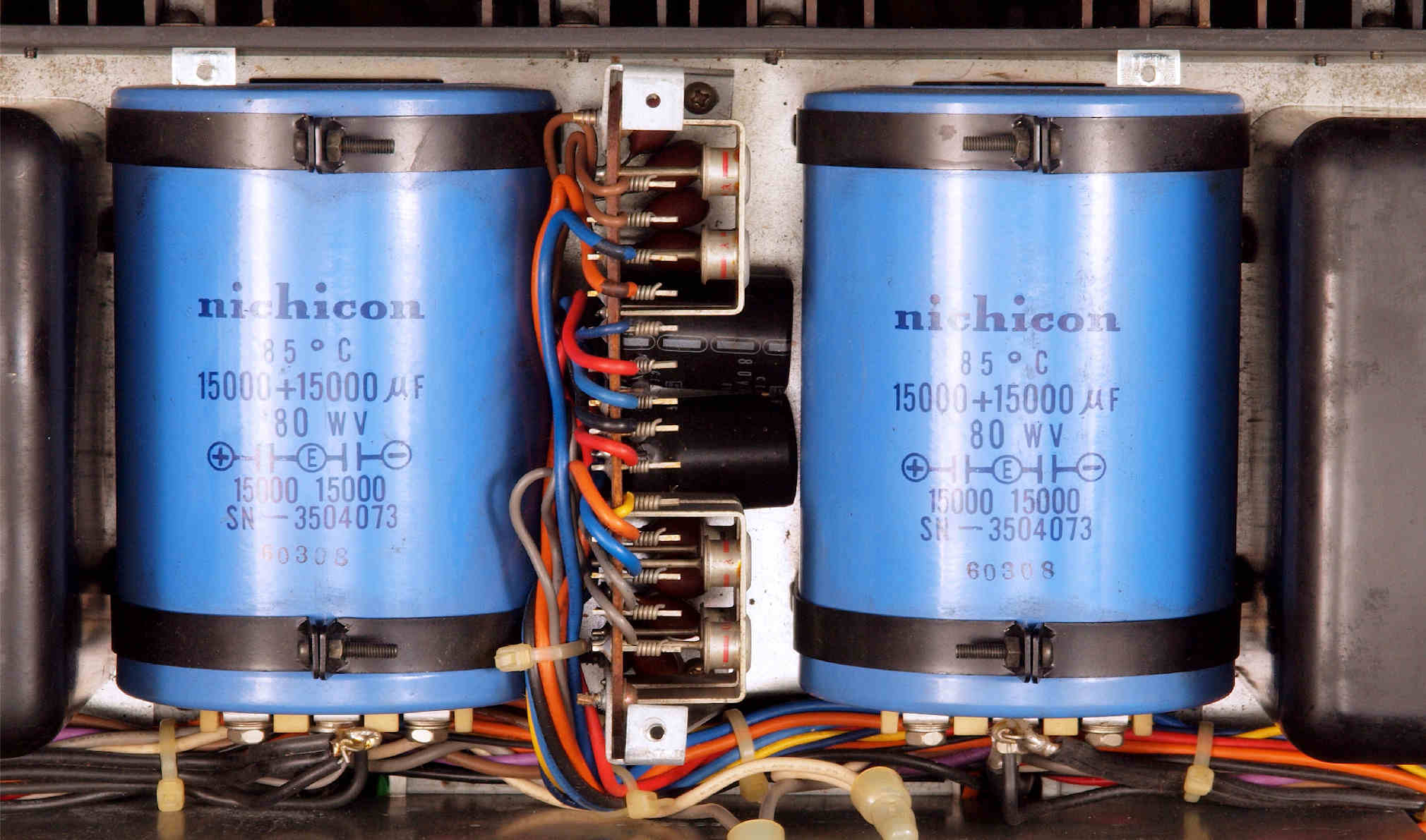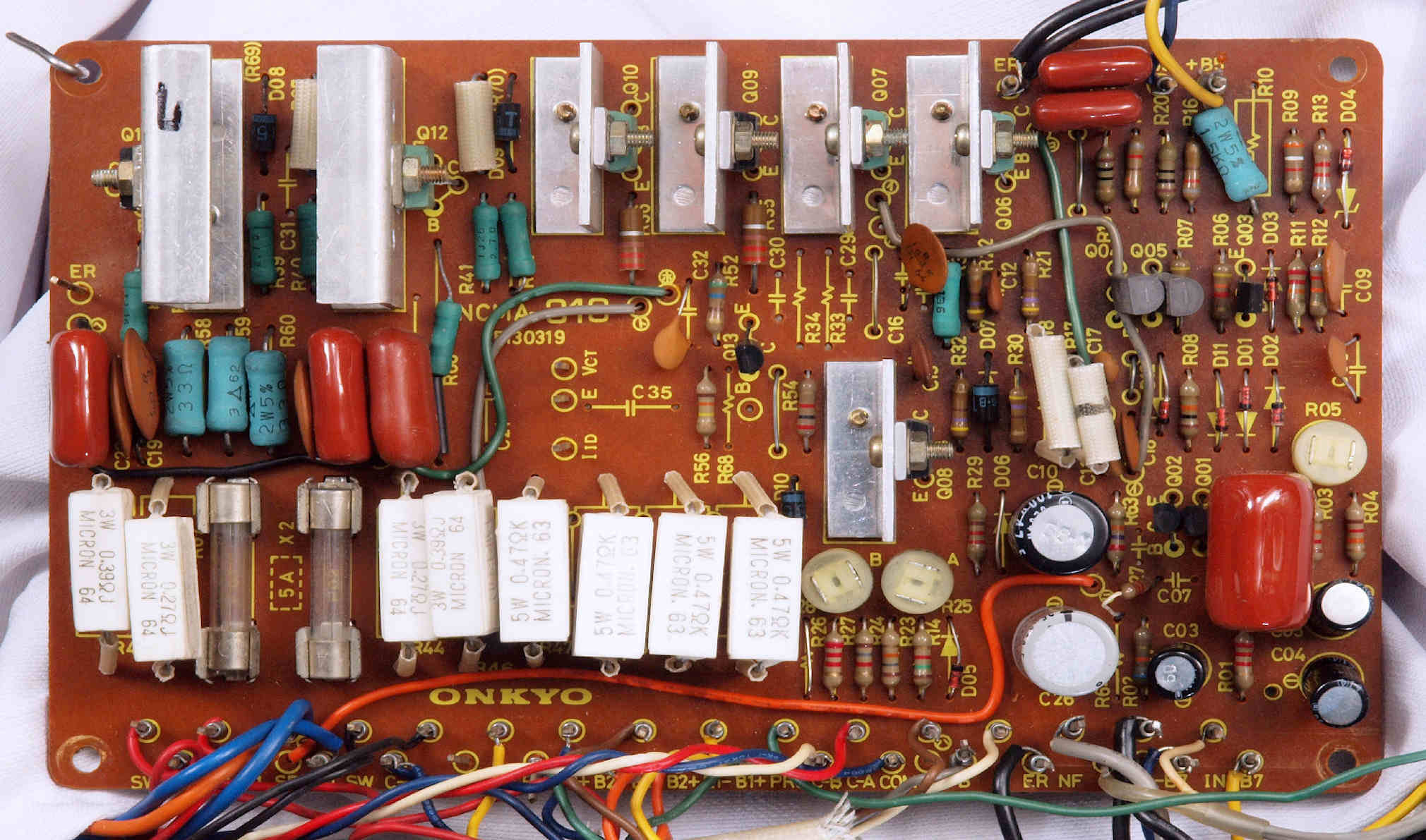 TR(トランジスター)6個、電解コンデンサー24個、フイルムコンデンサー2個、FET(電解トランジスター)2個交換