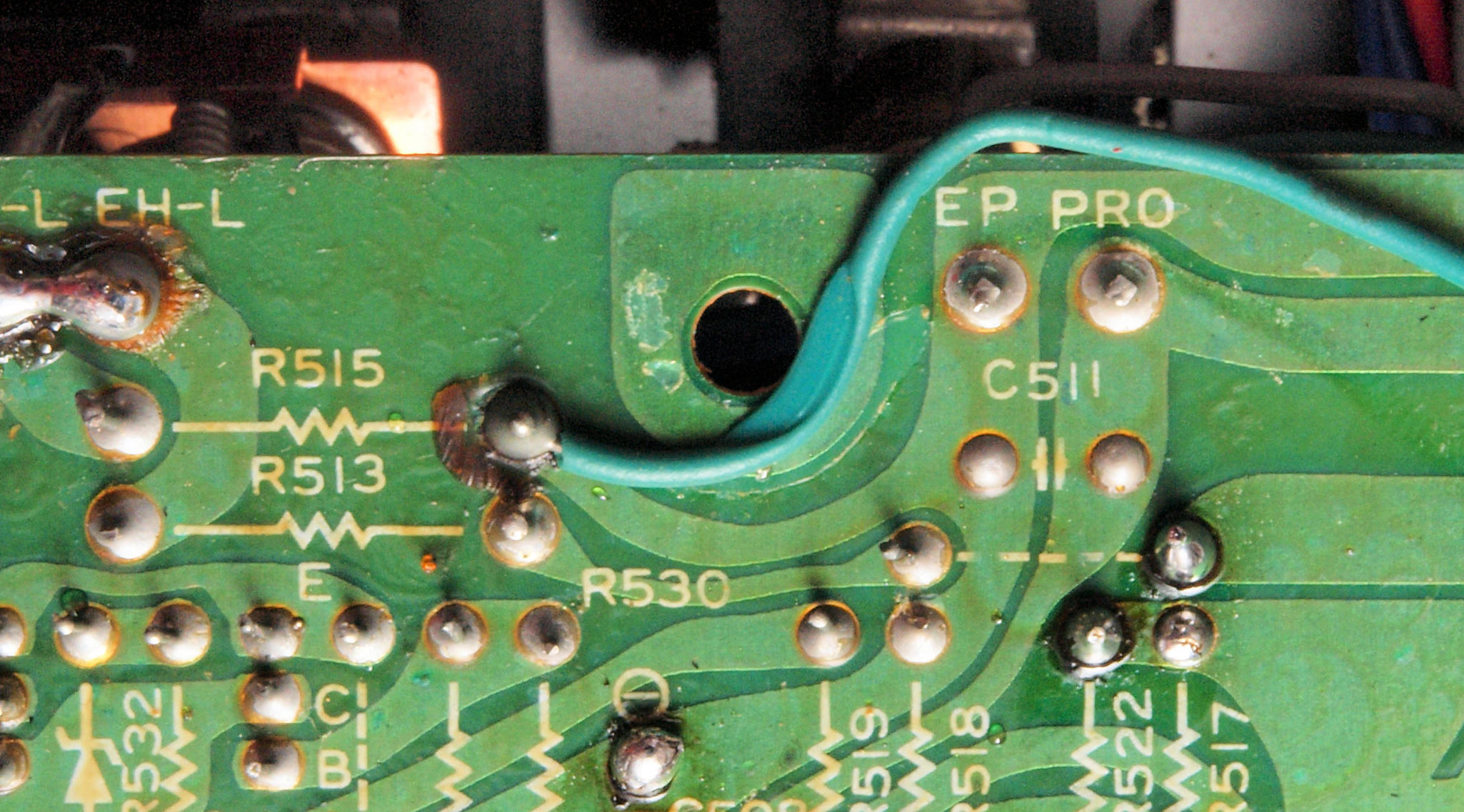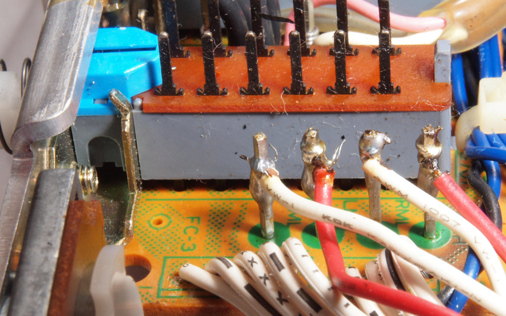 | A2.SP接続リレー基板裏。ジャンパー線が止ビスに挟まっていた、もう少しでシャーシ短絡。 |