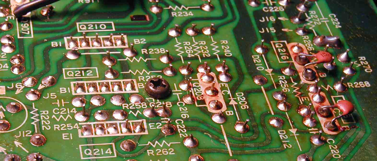 | 4. 基板修理、半田補正作業、Q208の所は完全に剥離している |