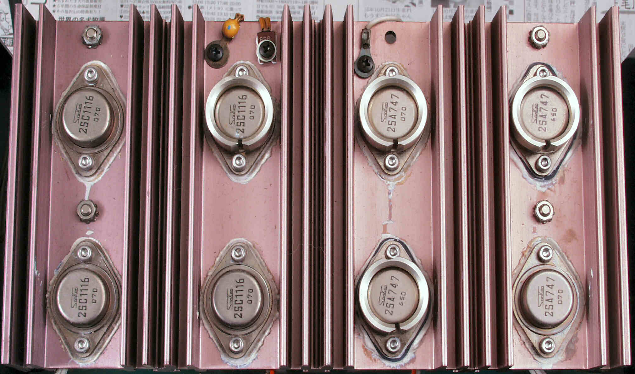 | C64. 修理後 L側終段TR(トランジスター)、放熱キャップは上4個に移動する | ||||||||||||||||||||||||||||||||||||||||||