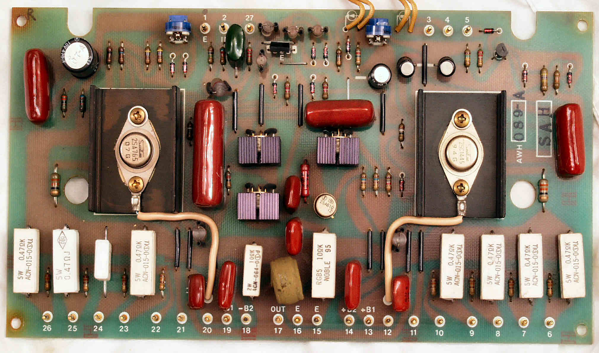 | C12. 修理後 R−AMP基板 バランス・バイアス調整用半固定VR2個、電解コンデンサー4個、フイルムコンデンサー1個交換 | ||||||||||||||||||||||||||||||||||||||||||
