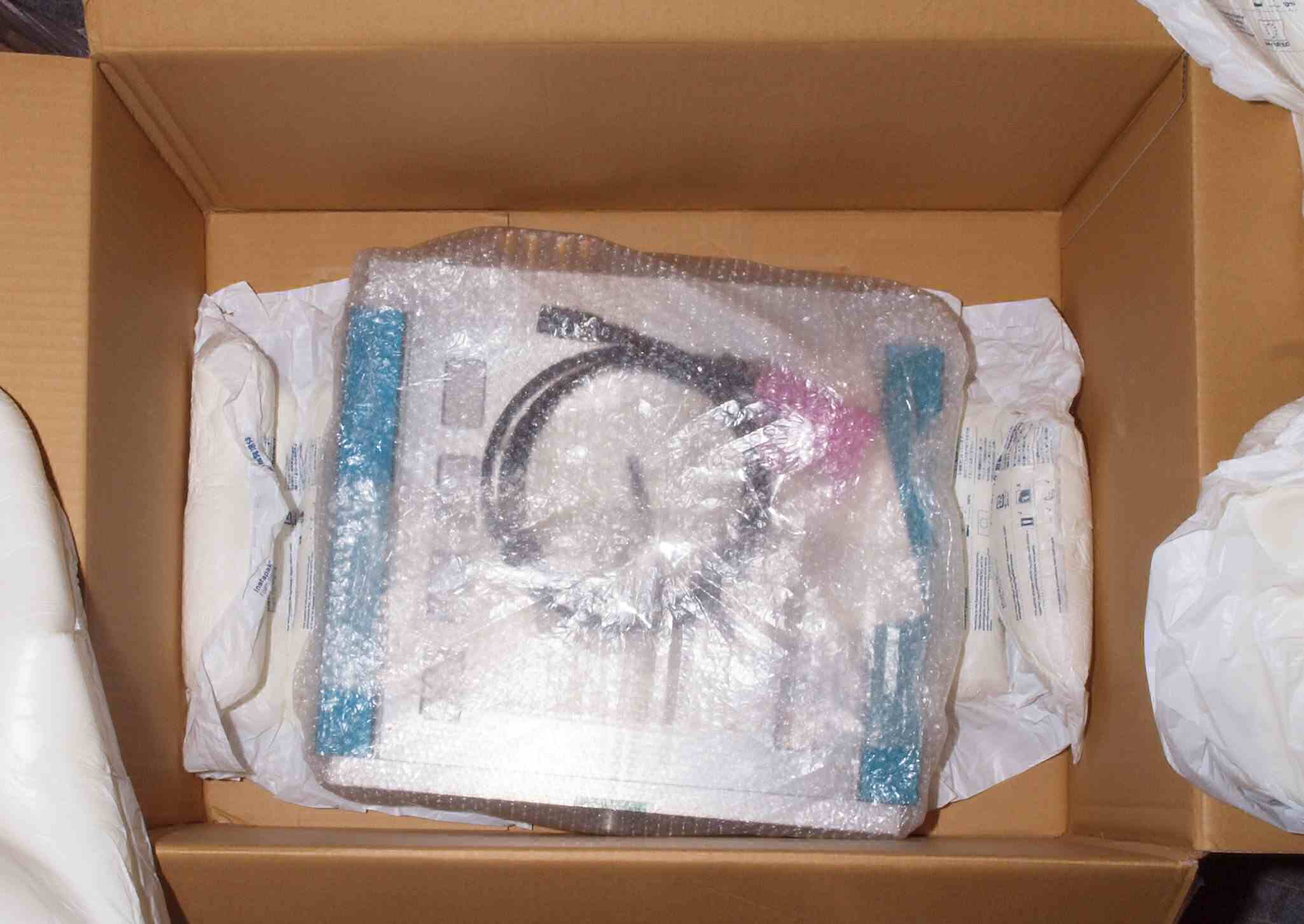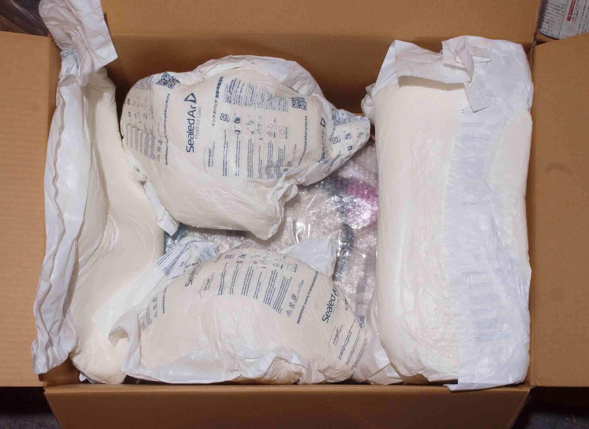 | K. 梱包の様子。 画像をクリックすると、大きく(横幅2050ドット)表示されます。 K1. SM−SX100上に大きな緩衝材 |