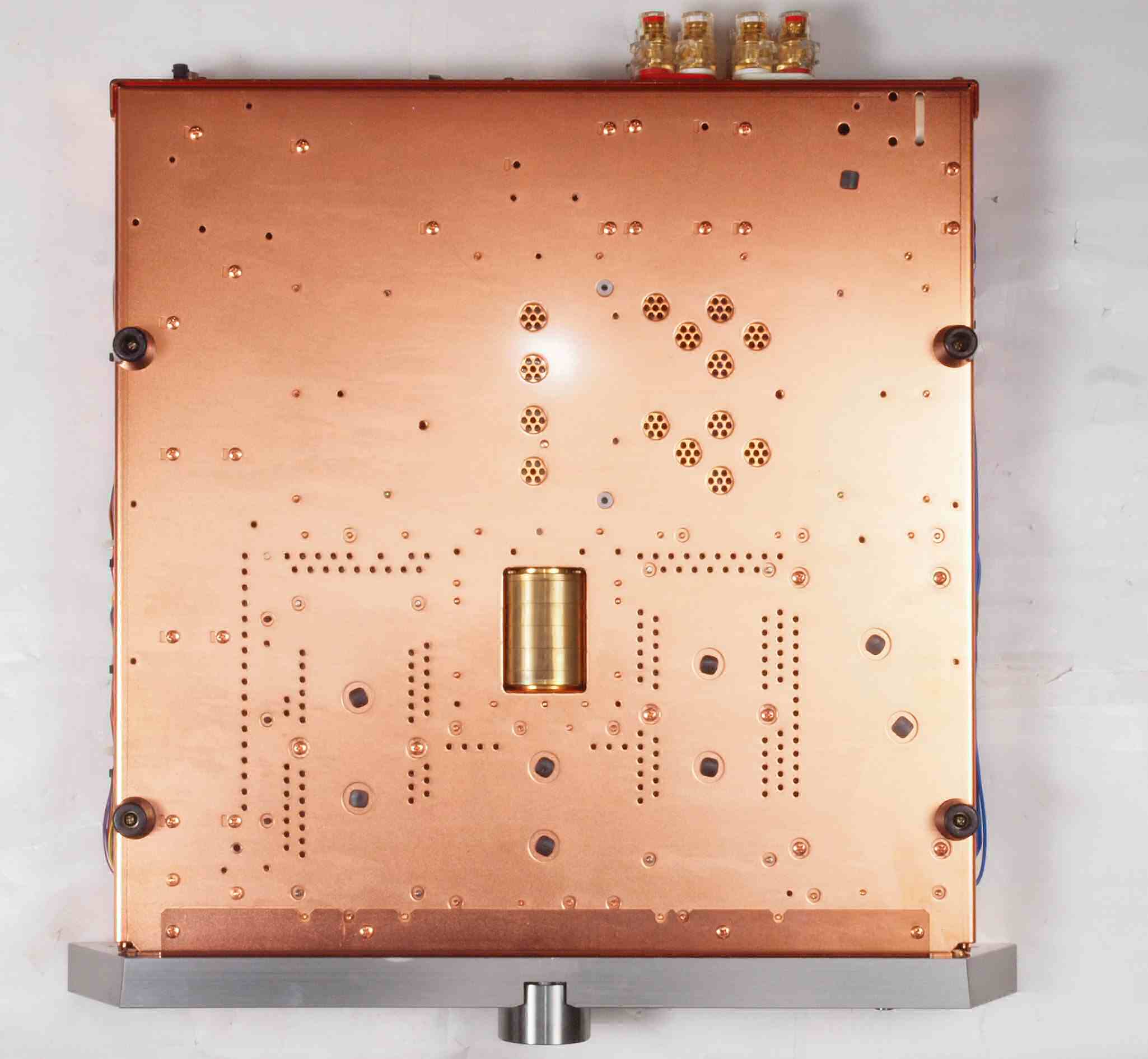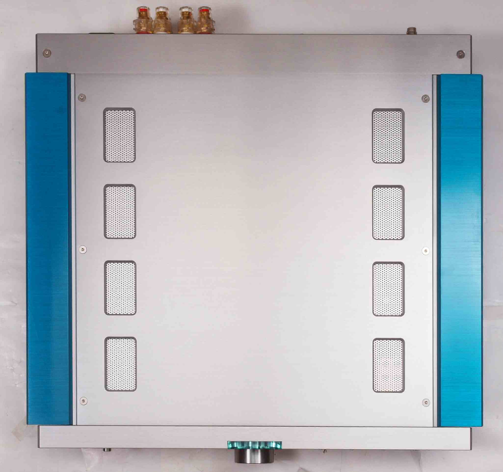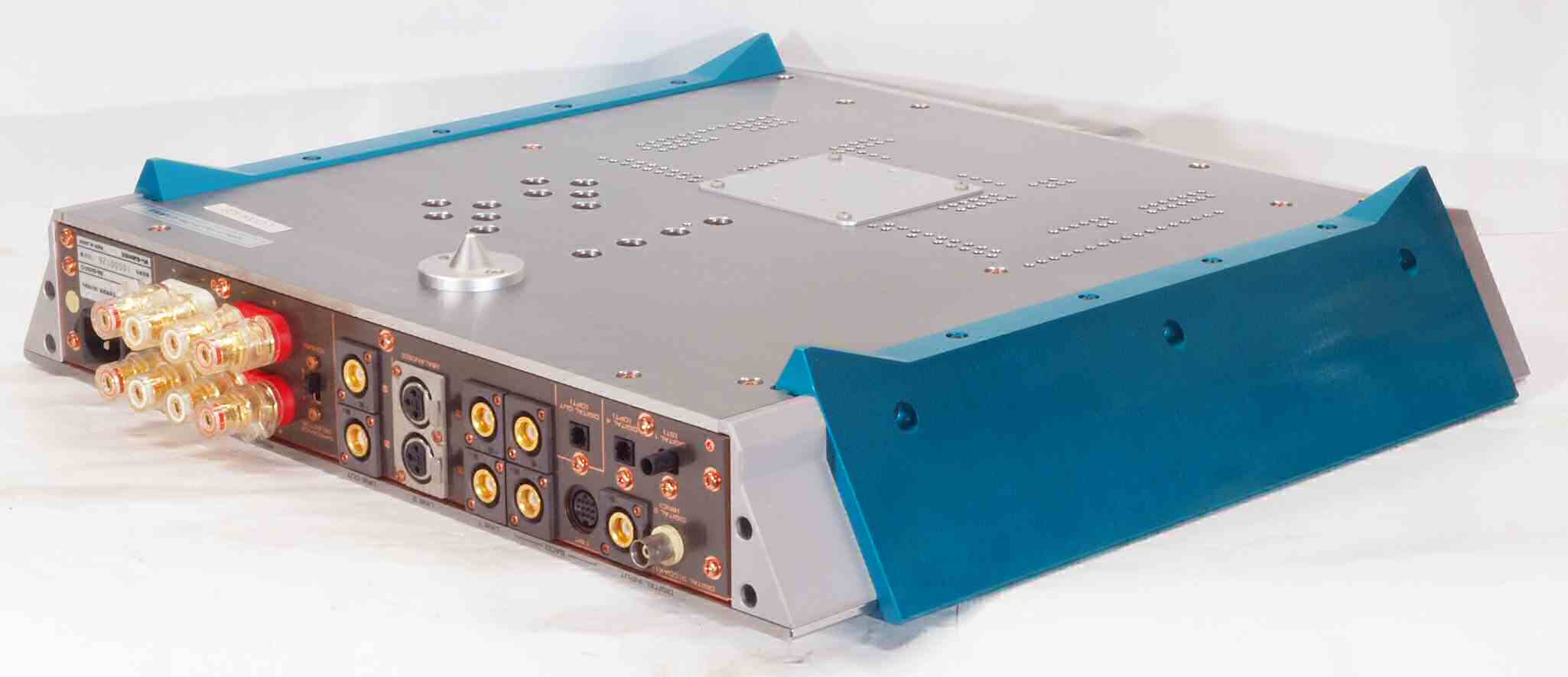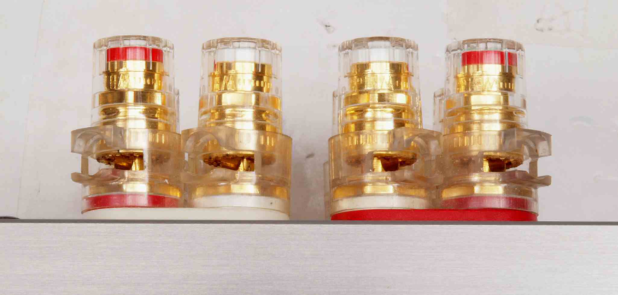 | CC3. 修理後 使用しない端子にはキャップを挿す。 ユーザーはマルチアンプの低域に使用予定。入力RCA端子はショウトピン、出力RCA端子は防塵キャップ。 |