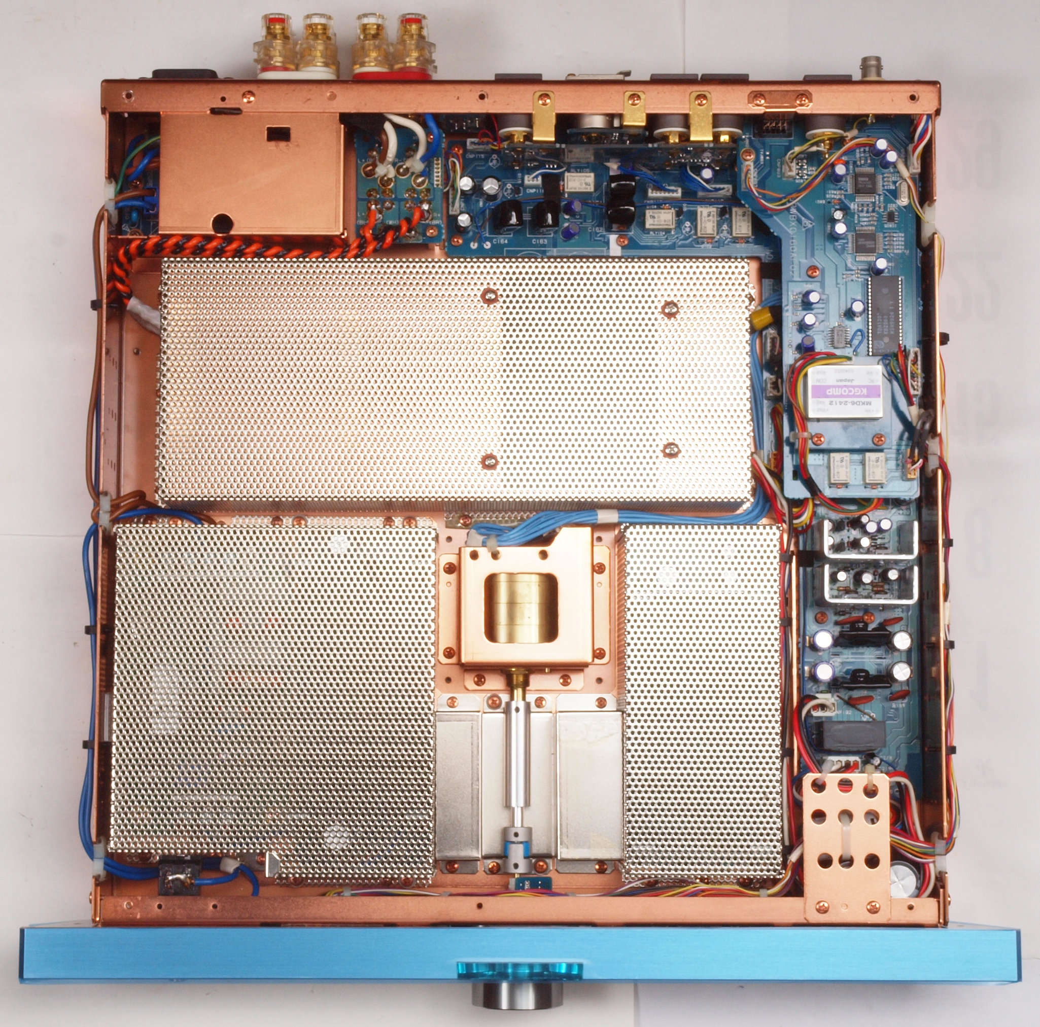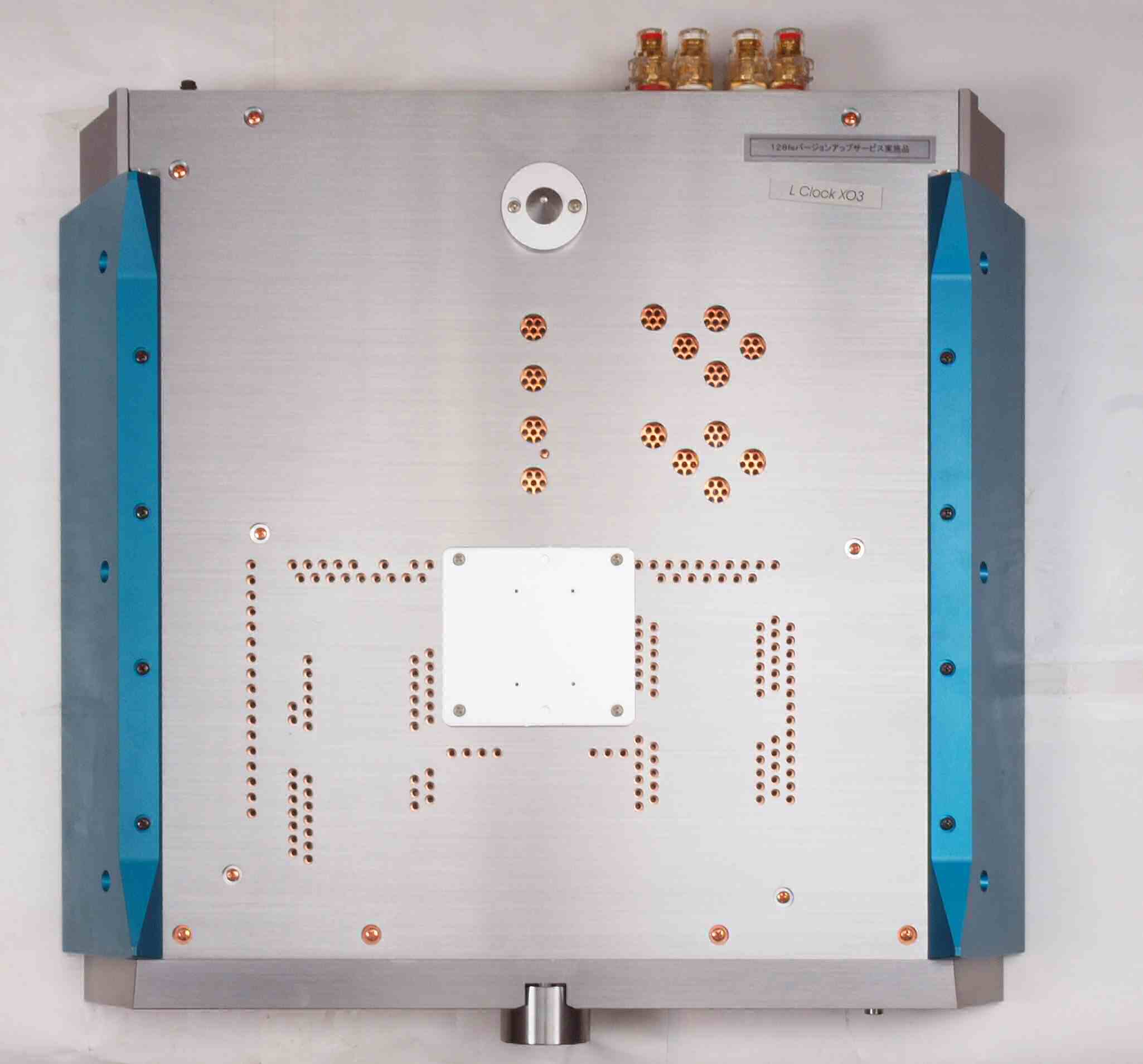| A33. 点検中 左右横パネルと上下蓋を取り、上から見る。増設された外部クロック水晶発振器、LcAudio Lclock-XO3 STANDARD。 | ||||||||||||||||||||||||||||||||||
