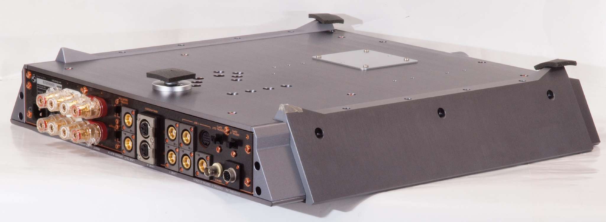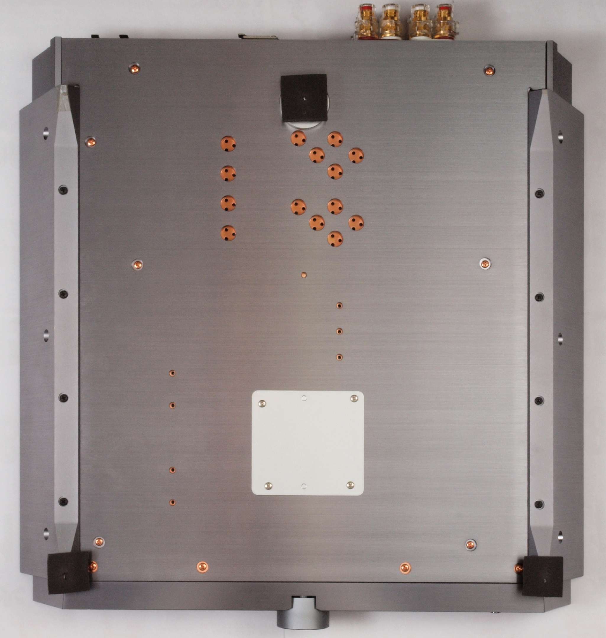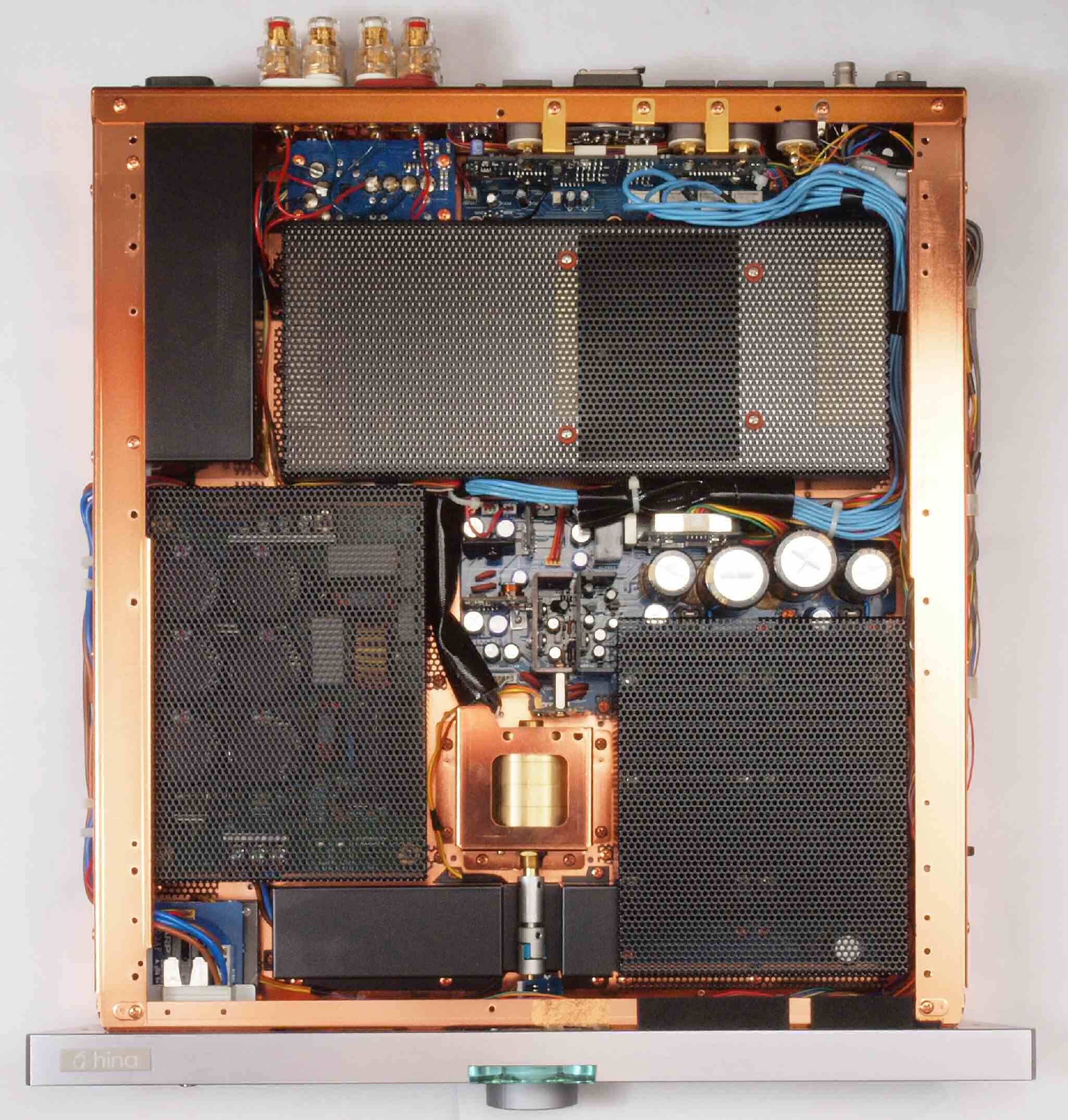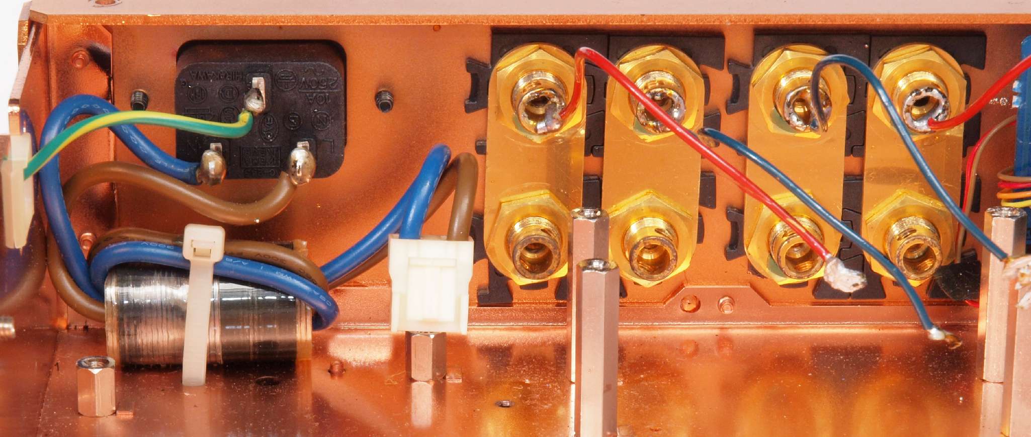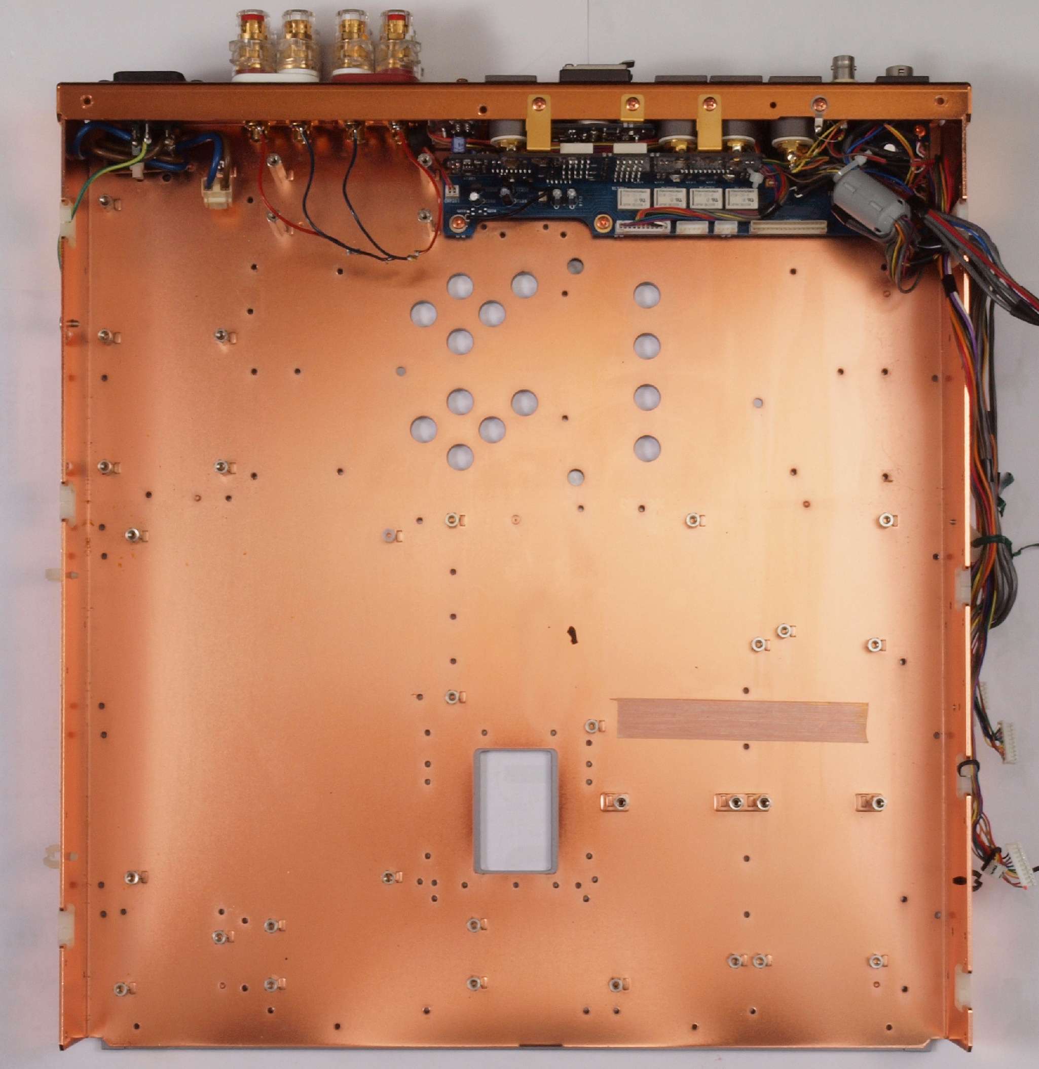 | C03. 修理中 主要基板を取り去ったシャーシ、入出力端子裏。 | ||||||||||||||||||||||||||||