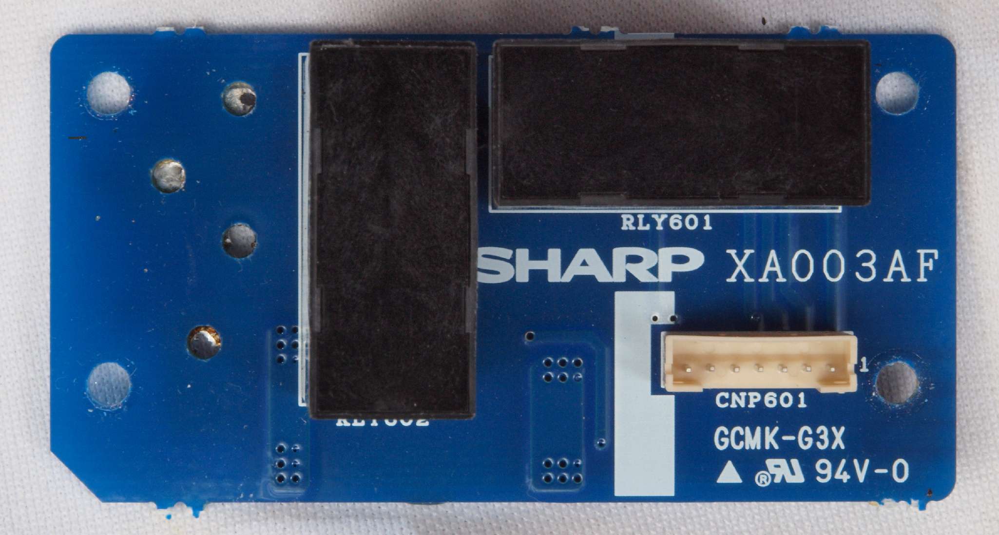 | C52. 修理中 SP接続リレー基板。横から見る。急いで挿入したのか、傾いて入る! | ||||||||||||||||||||||||||||