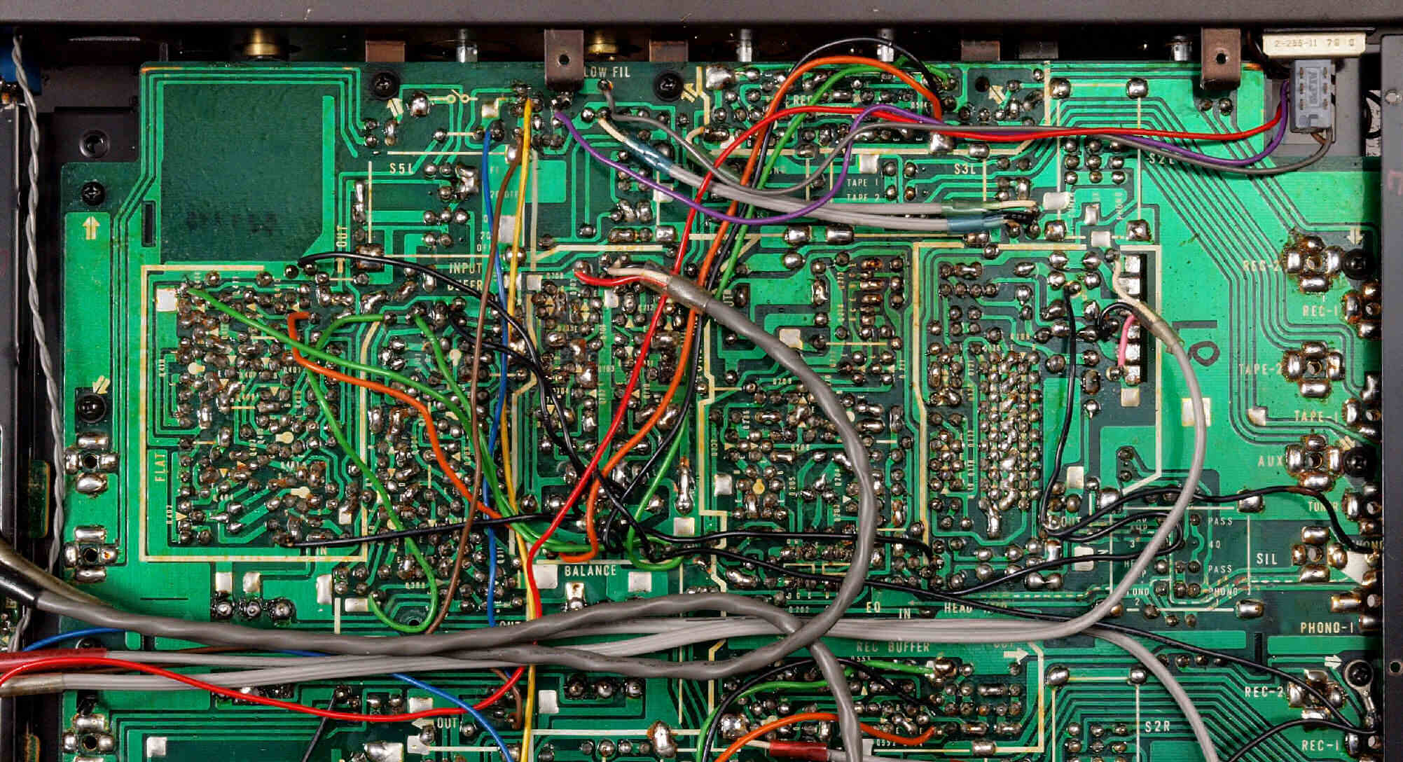 | C. 修理状況。 画像をクリックすると、大きく(横幅2050ドット)表示されます。 C11. 修理前 R側−AMP基板 |