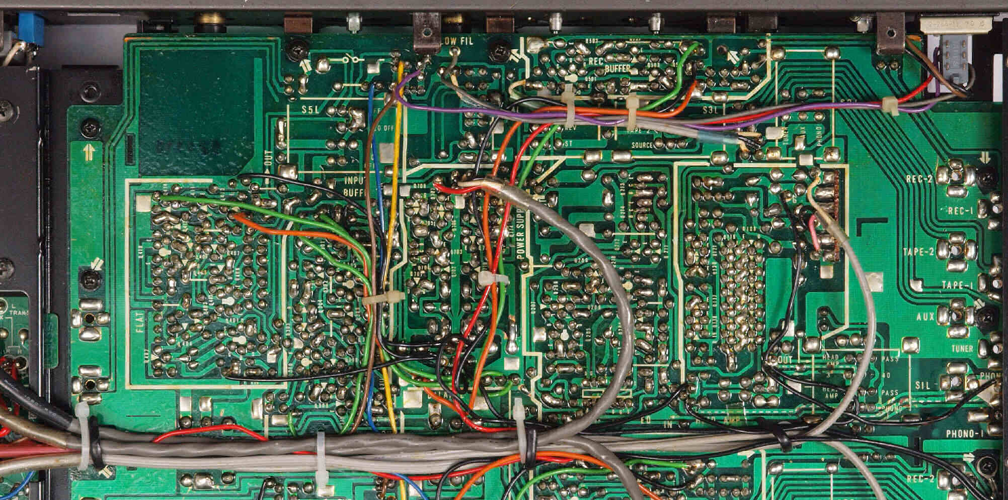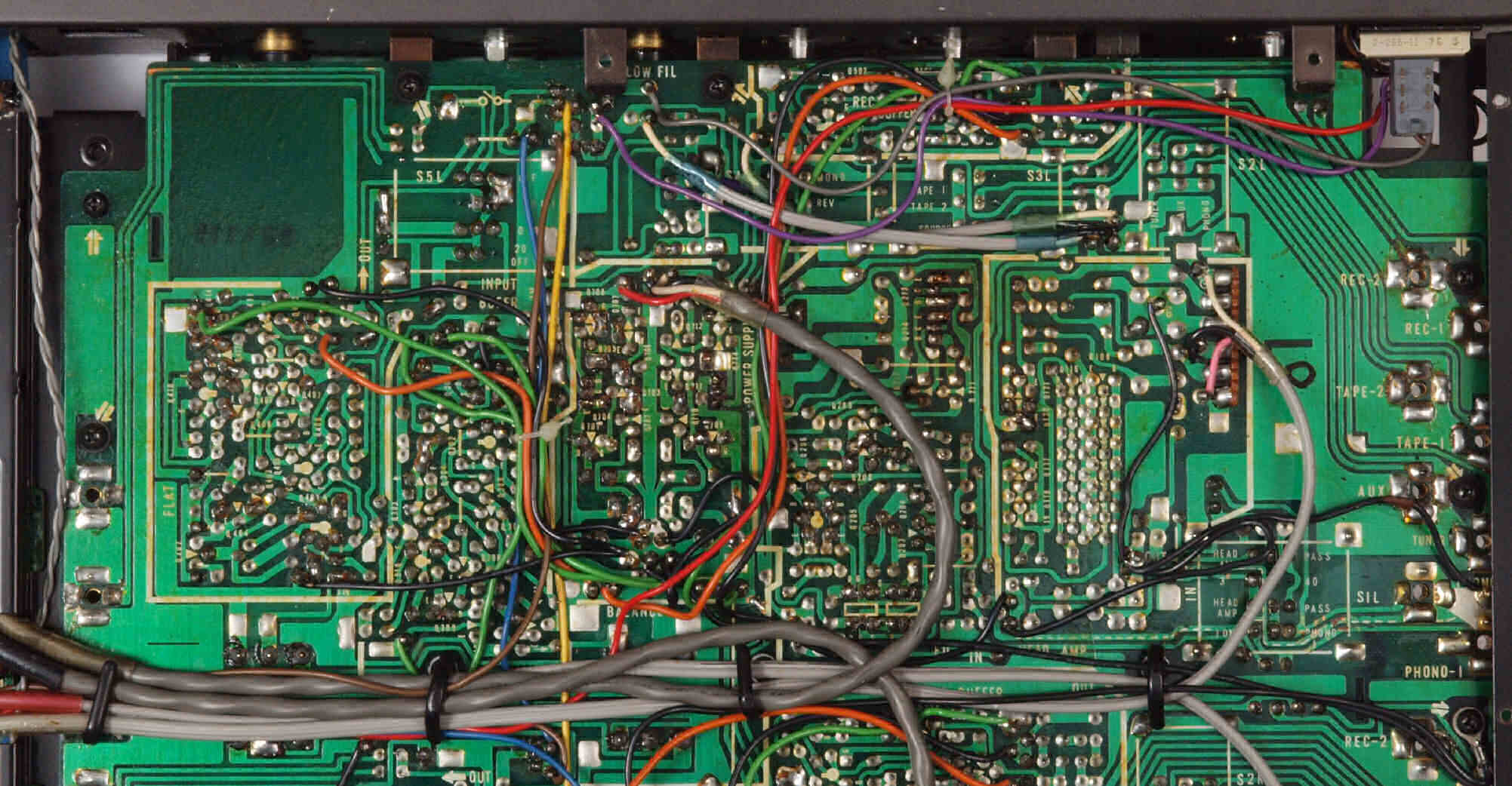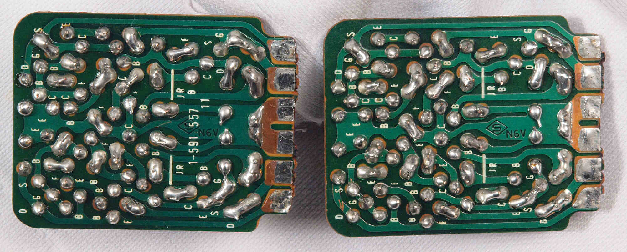 | C35. 修理中、HEAD−AMP定電源基板裏、洗浄後。 見た目は非常に綺麗だが、このままでは腐食する。 | ||||||||||||||||||||||||