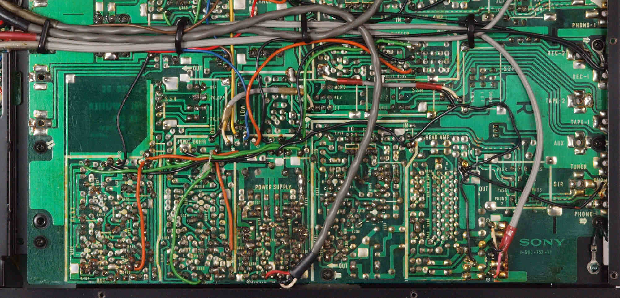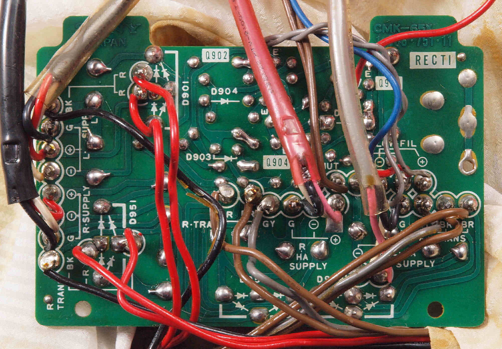 | C75. 修理中 電源基板裏、洗浄後。 見た目は非常に綺麗だが、このままでは腐食する。 | ||||||||||||||||||||||||