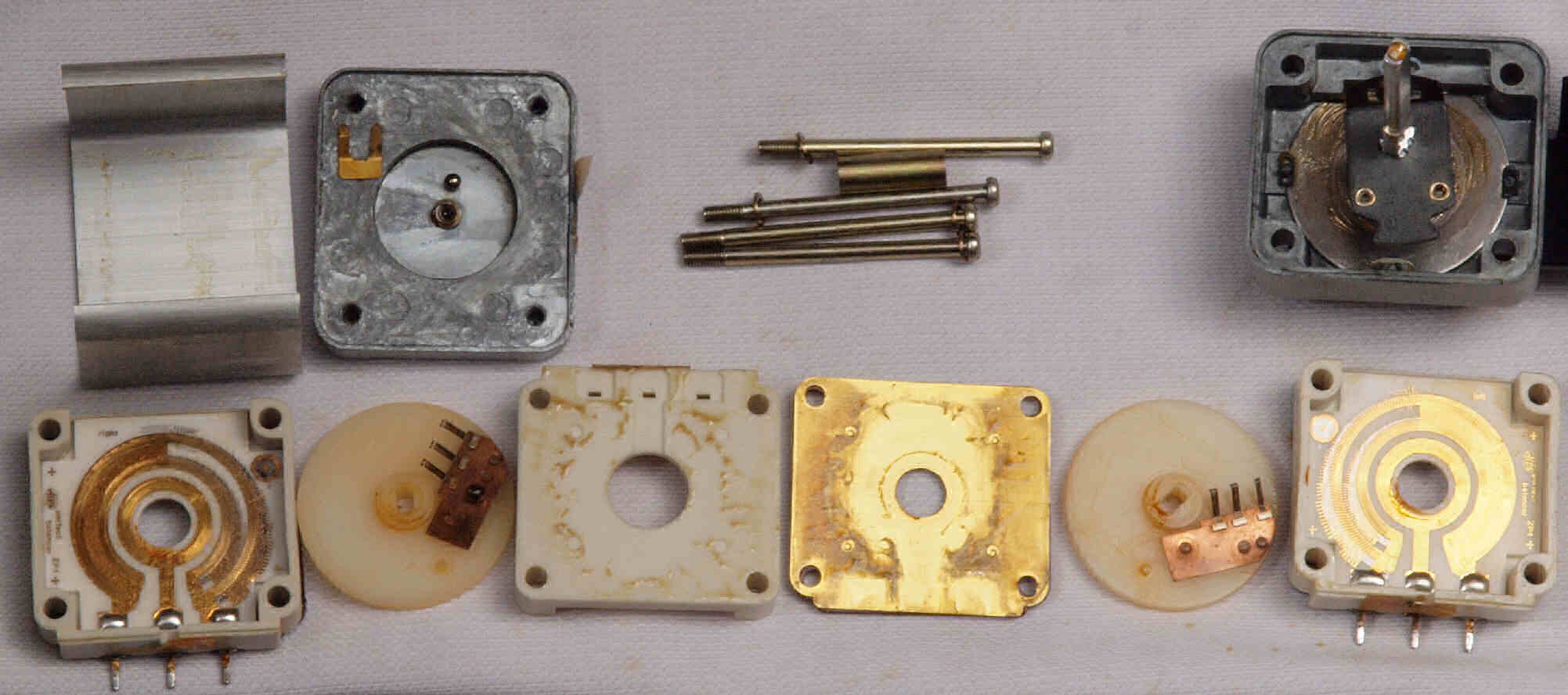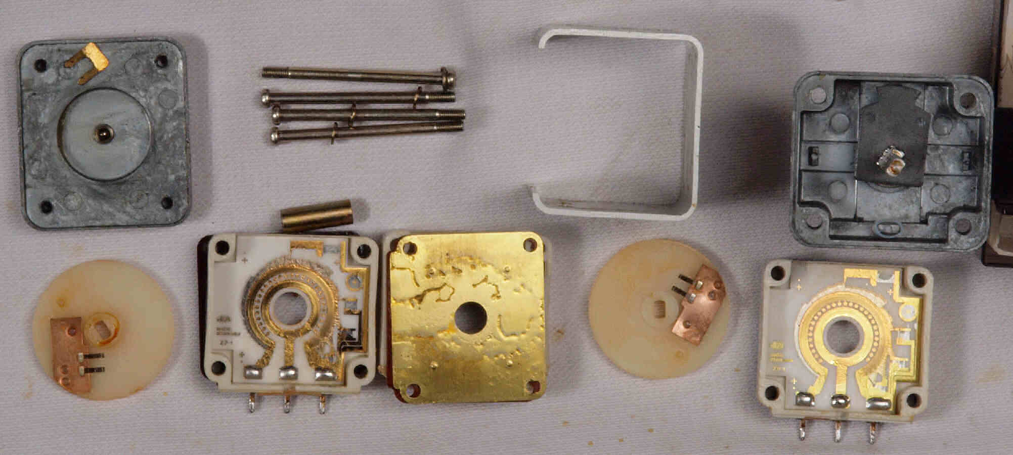 | C62. バランスVR分解・清掃中。 このVRの接点等は真鍮製なので腐食しないので接点復活材使用しない。 | ||||||||||||||||||||||||