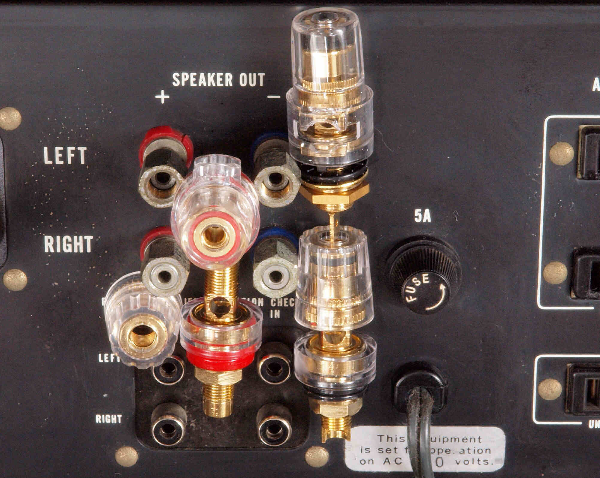 | A42. 点検中 SP接続端子。 上=端子穴保護カバー有り、下=端子穴保護カバー無。 | ||||||||||||||||||||||||||||||||||||||||||||||||||||||||||