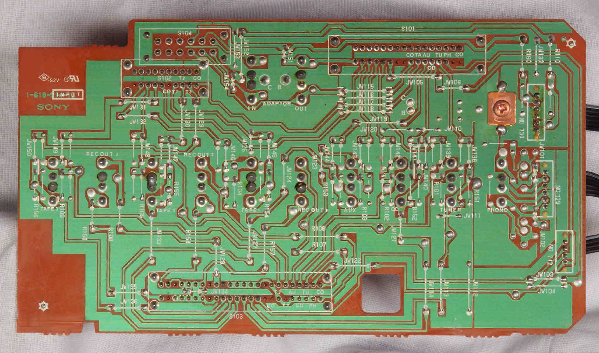 | CB1. 修理前 ソースダイレクトSW基板。 | ||||||||||||||||||||||||||||||||||||||