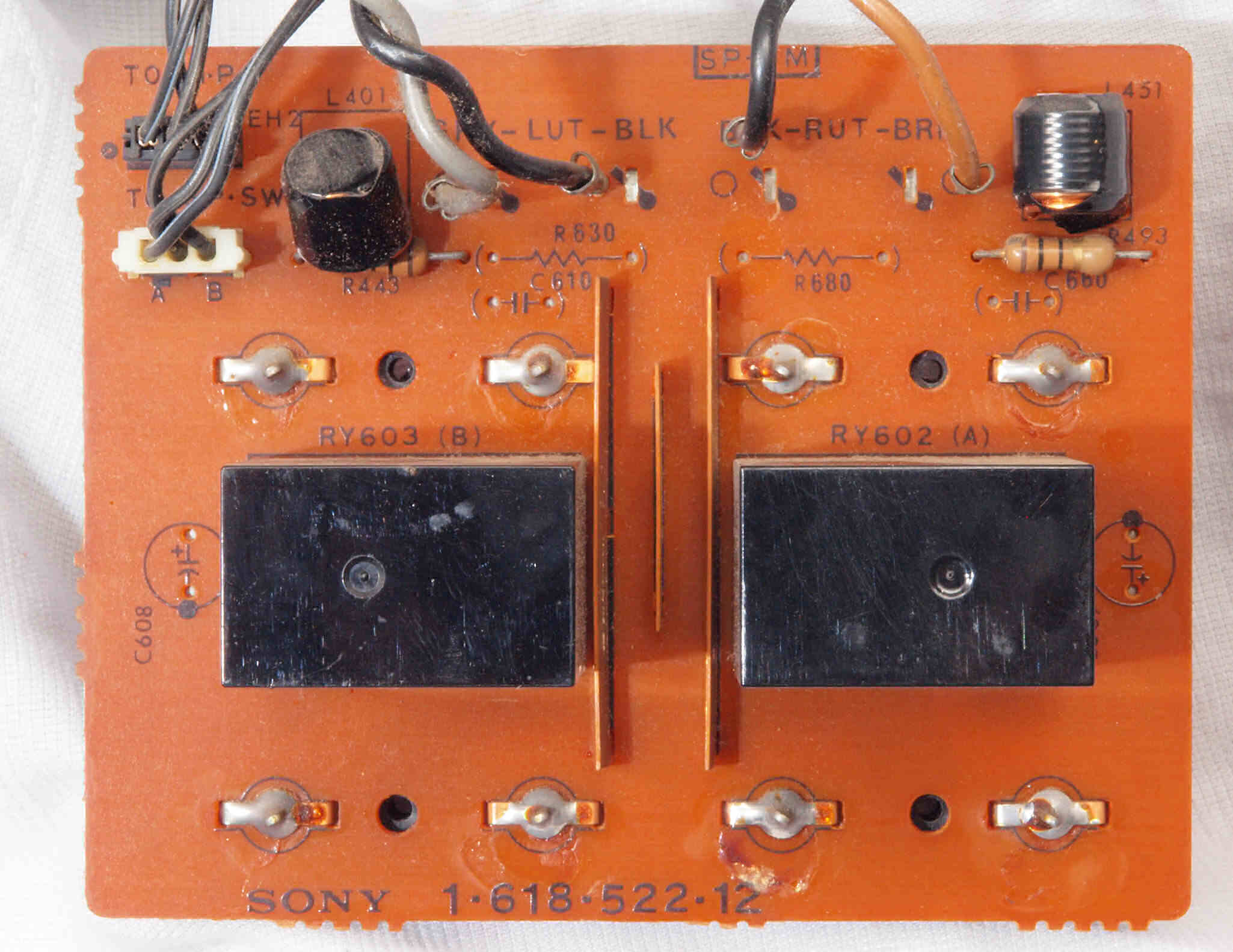 | CF2. 修理後 SP出力端子基板 リレー2個、電解コンデンサー2個交換 | ||||||||||||||||||||||||||||||||||||||