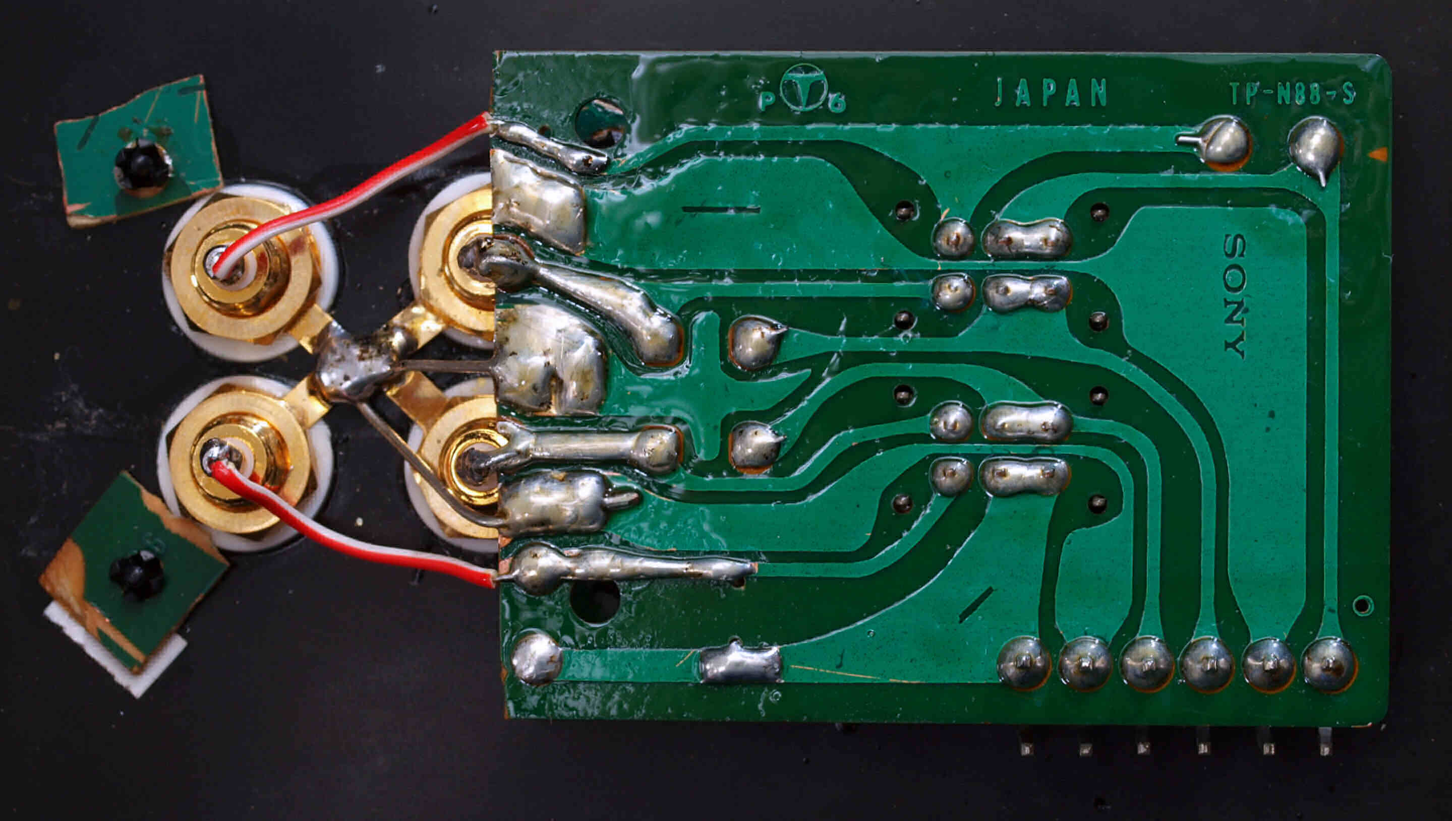 | C52. 修理後 入力RCA端子基板 フイルムコンデンサー4個交換。 | ||||||||||||||||||||||||||||