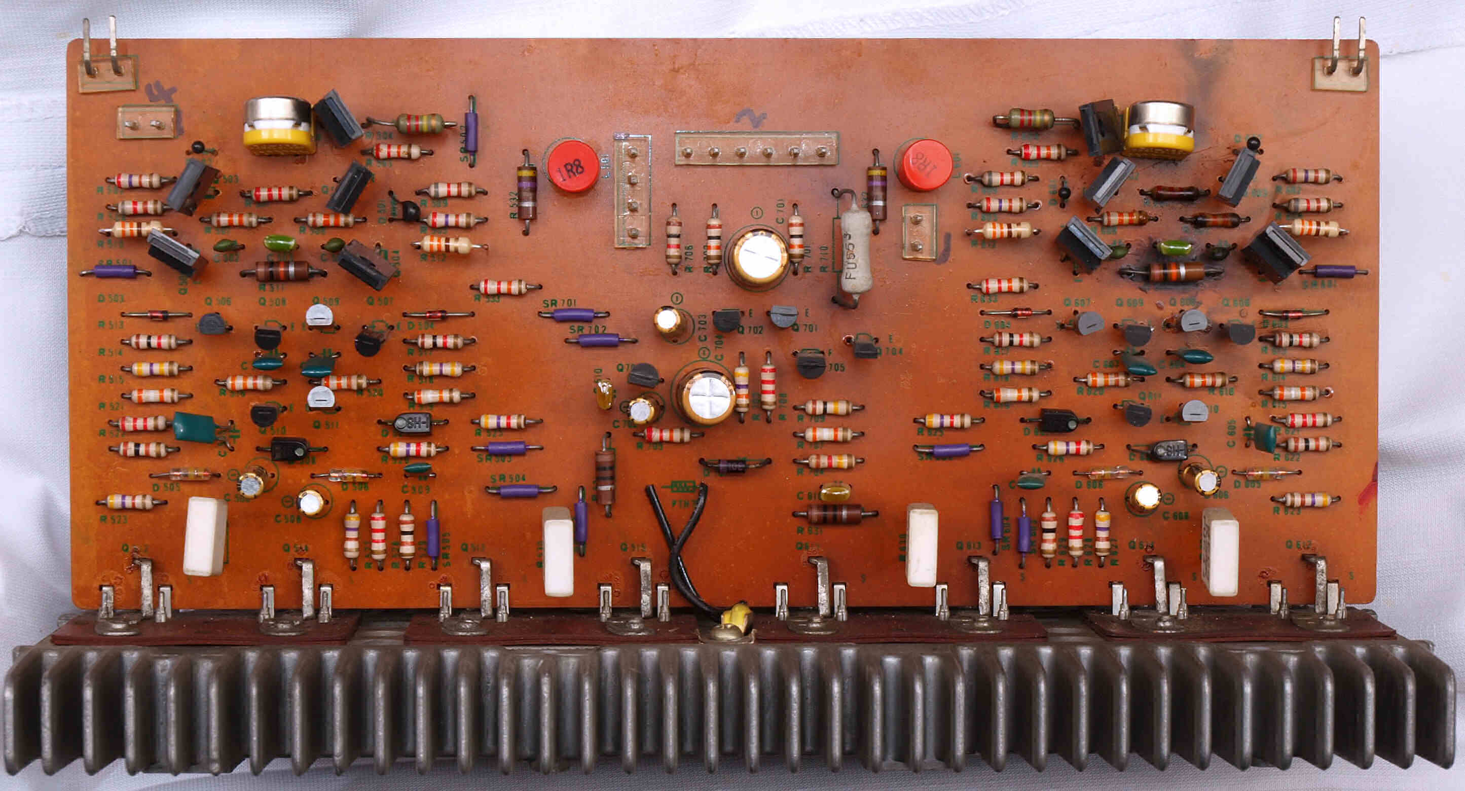 | C22. 修理後 終段基板 TR(トランジスター)22個、バランス・バイアス調整用半固定VR2個、抵抗4個、電解コンデンサー個8交換 | ||||||||||||||||||||||||||||