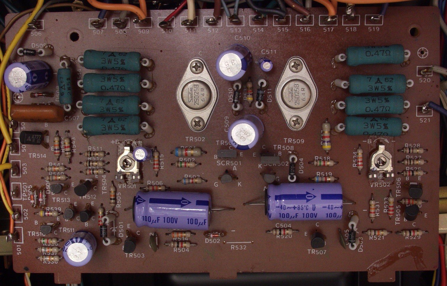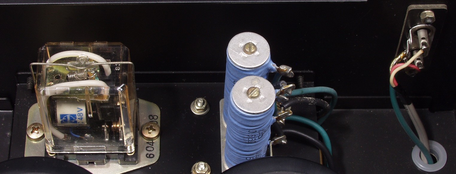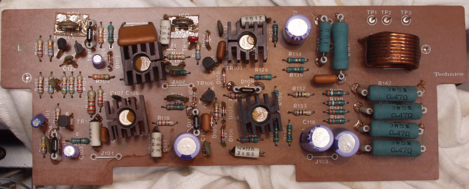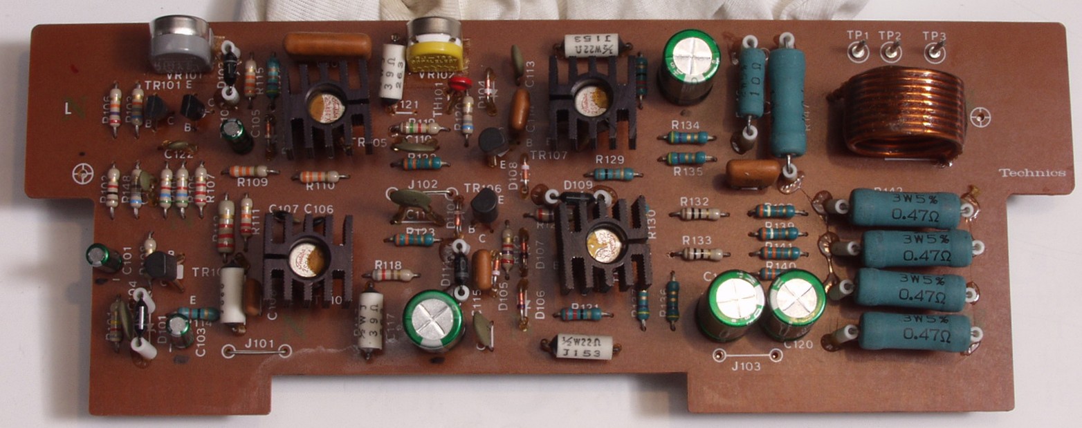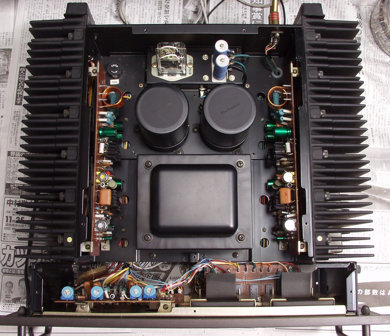 | 寸評 終段TR(トランジスター)の供給電圧まで安定化した理想的なAMPです。 途中で基盤改造がありますので、未対策器は修理した方が良いです(対作品は「2a」のシールが添付) 高域の発振対策を施し、安全の為、フューズを挿入した |