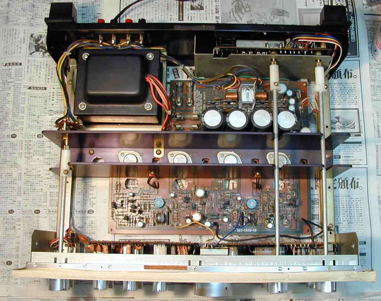 DCアンプの初期の製品で、長い間使っていなかったのでガリ音が激しく、ボリュームVR(VolumeResistance)をいじっていたらボリュームのツマミが内部と接続している部分とが外れてしまったようでカラカラ回ります。