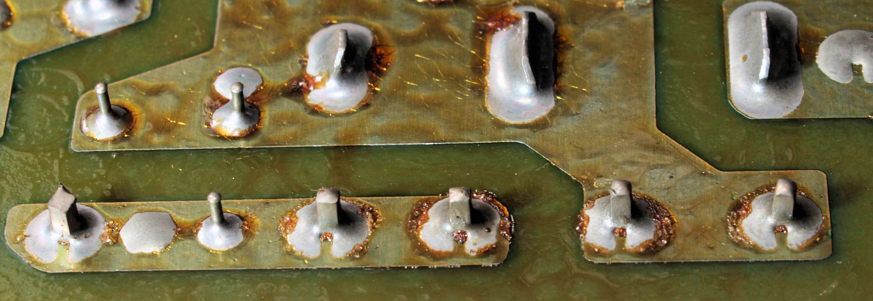 CH5. 修理(半田補正)後 トレー操作基板裏。 半田を全部やり直す。