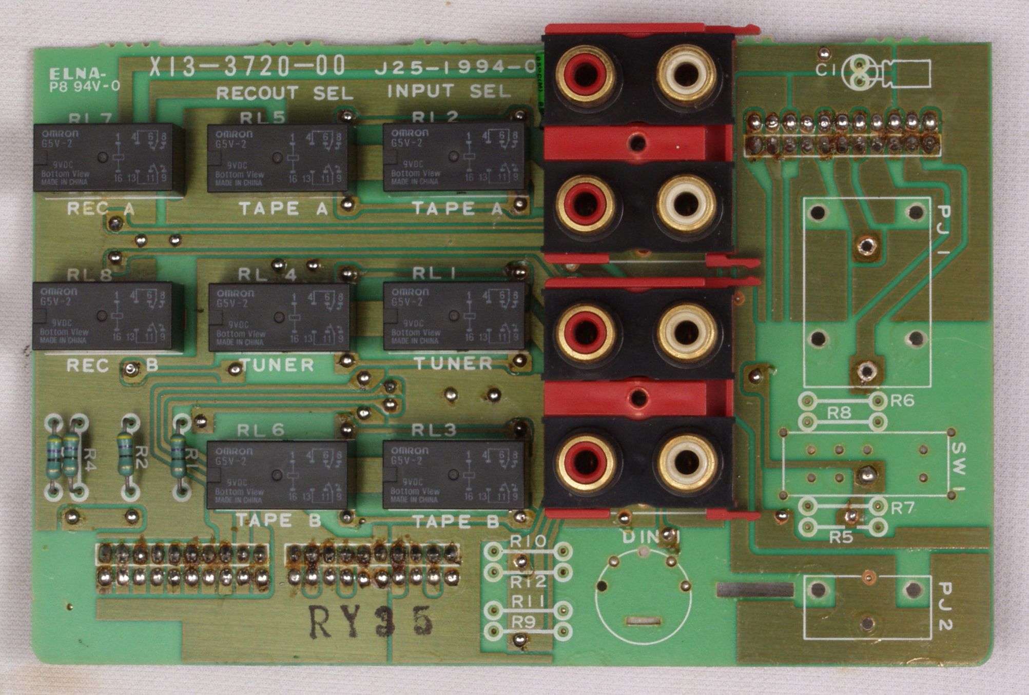 C234. 修理中 終段・プロテクト基板裏、取り出したSP接続リレー、反対側も未半田!
