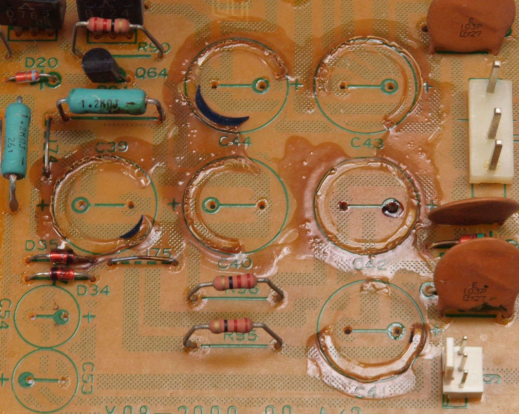 | C64. 修理前 入力RCA端子基板裏 | ||||||||||||||||||||||||||||||||||||||||||||||||