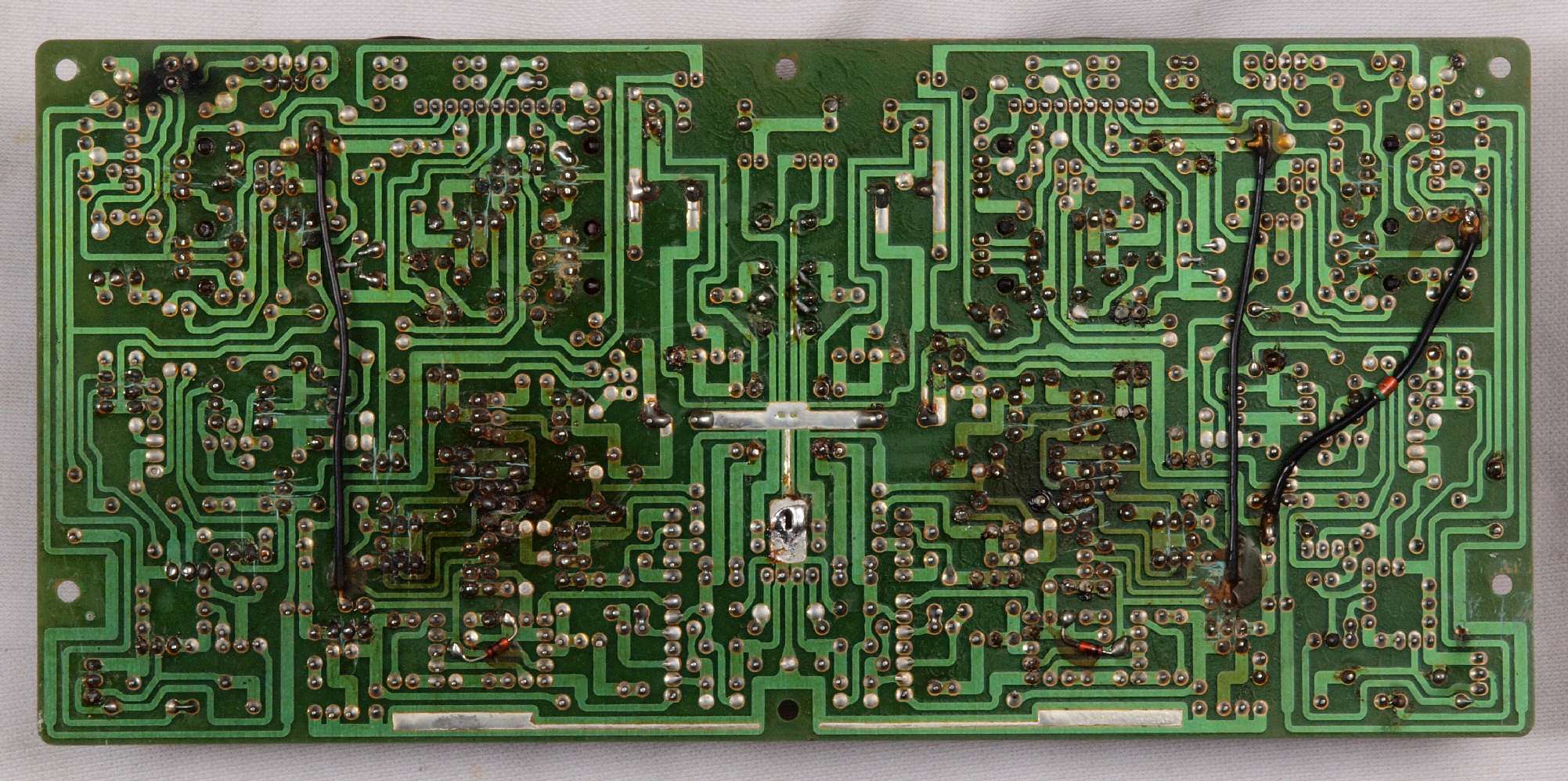 | C54. 修理(半田補正)後 EQ−AMP(equalize-amplifier)基板裏。 半田を全部やり直す。 | ||||||||||||||||||||||||||||||||||||||||||||||||