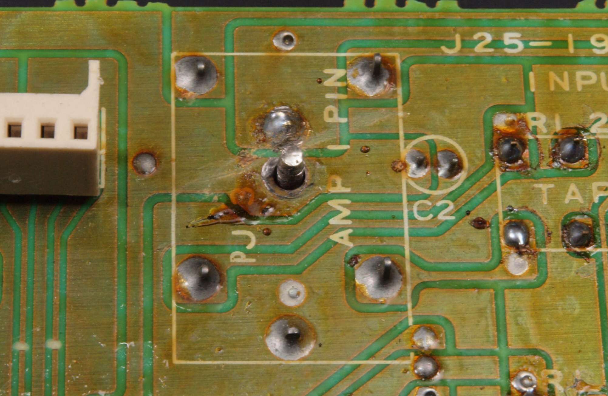 | C64. 修理前 入力RCA端子基板裏 | ||||||||||||||||||||||||||||||||||||||||||||||||