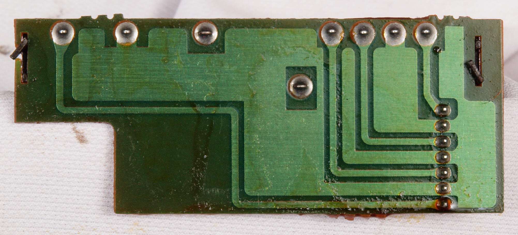 | C412. 修理前 SW(switch)コントロール基板、 多量の接点復活材の使用でここまで浸透! | ||||||||||||||||||||||||||||||||||||||||||||||||