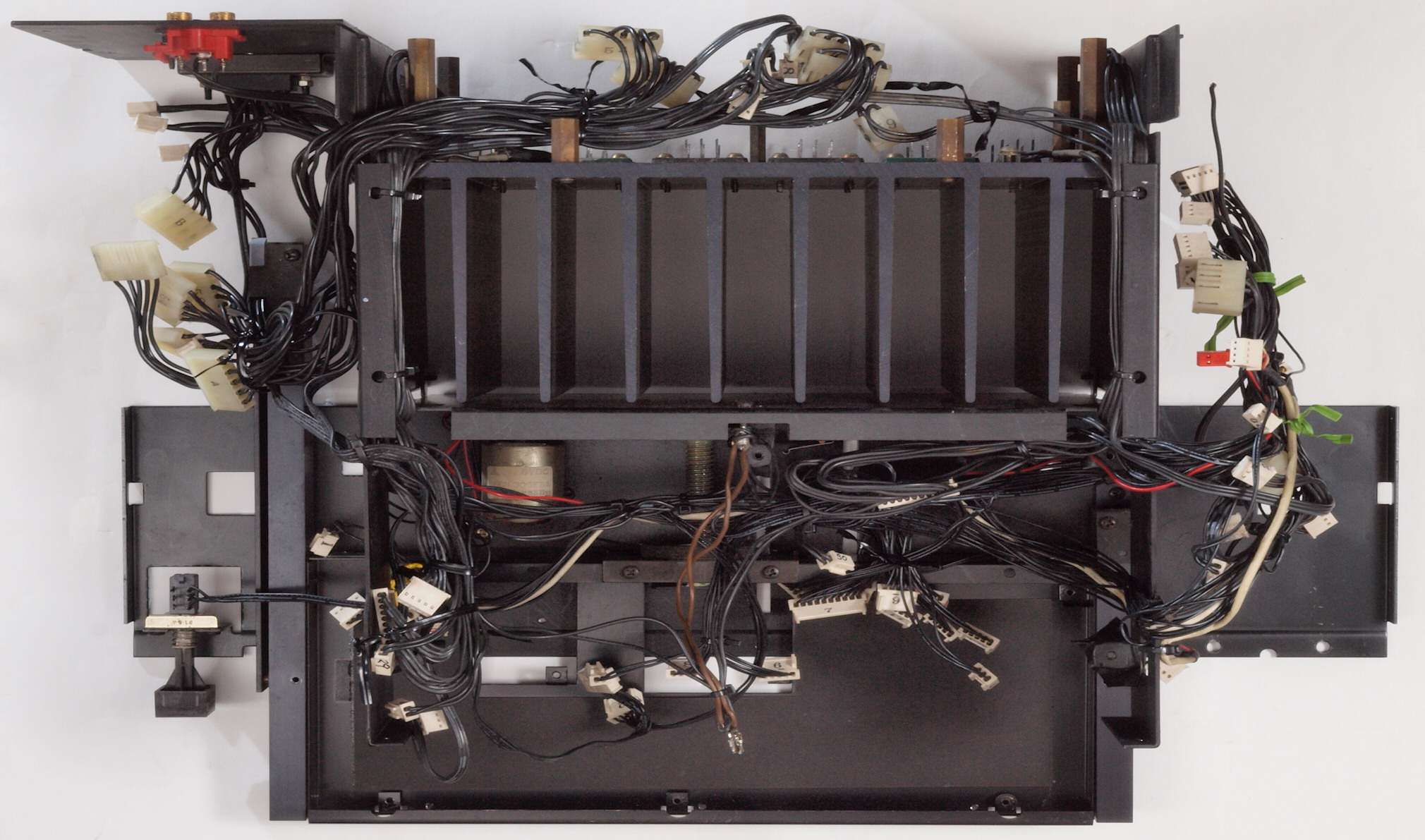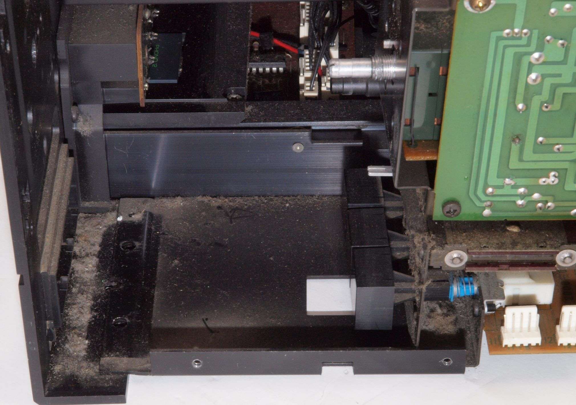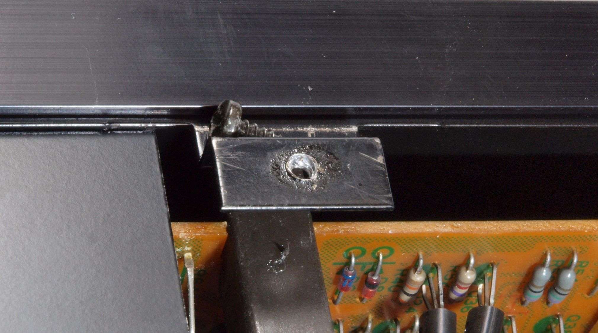A27. 点検中 上下蓋、AUX−RCA端子版を取り、下から見る