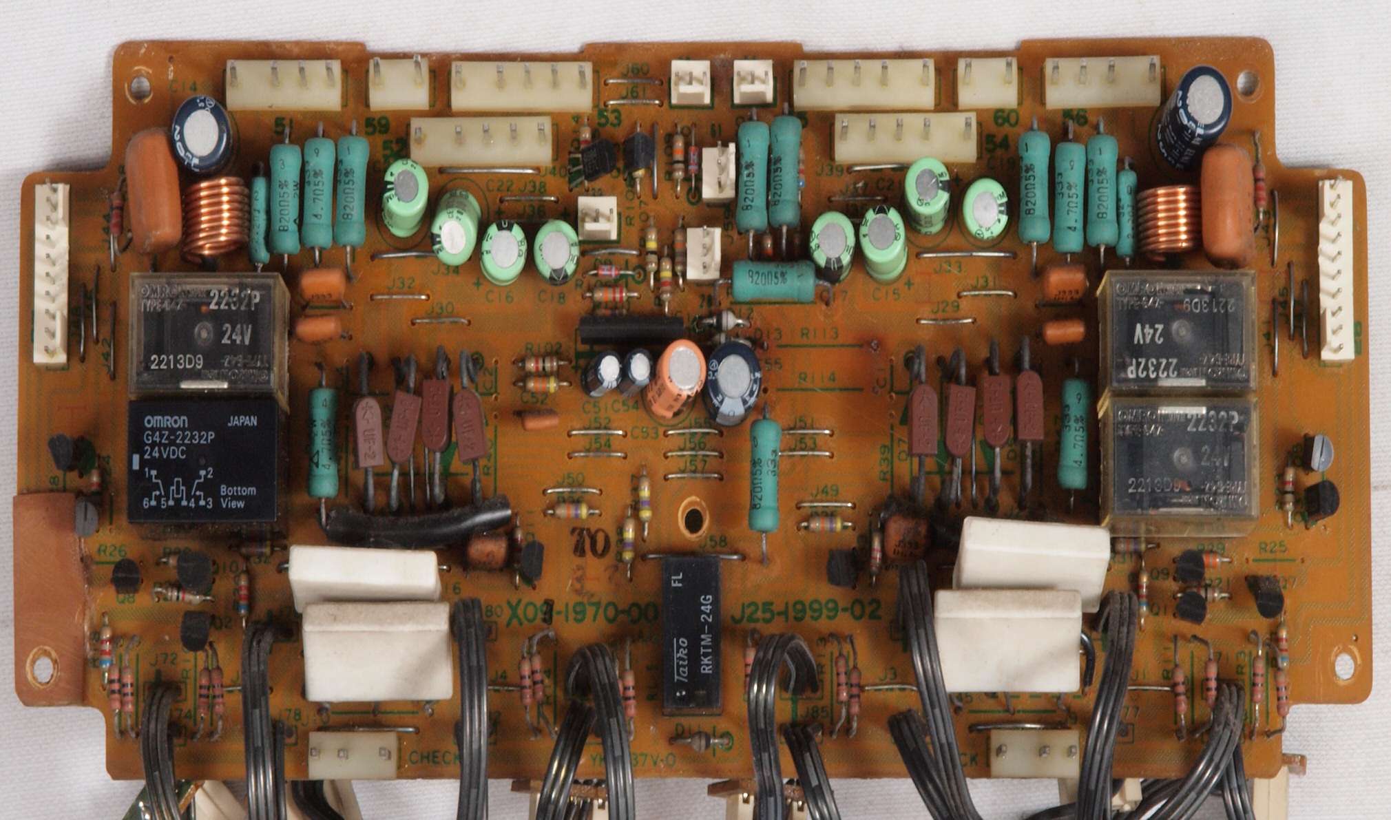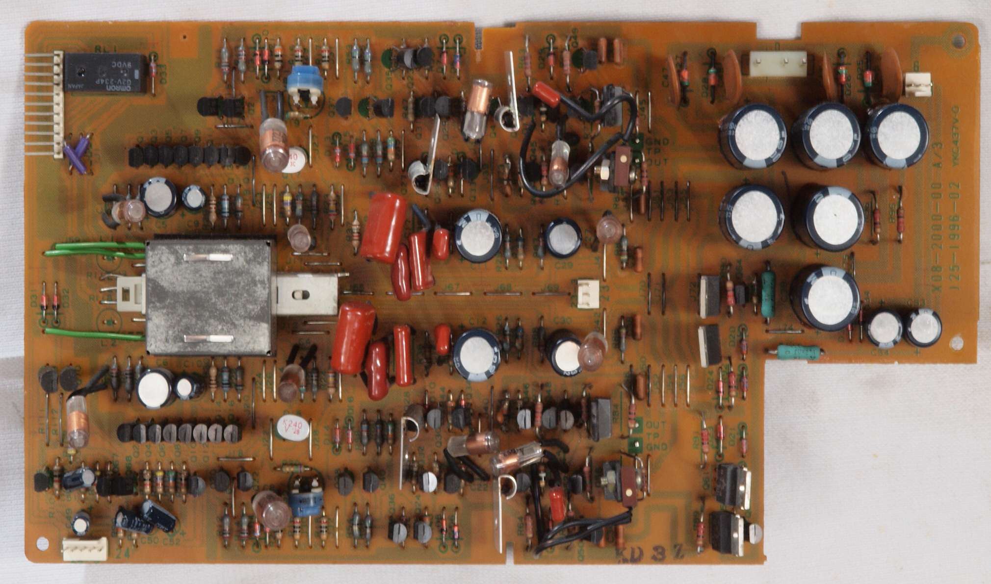 C22. 修理後 終段・プロテクト基板 リレー5個、電解コンデンサー14個交換