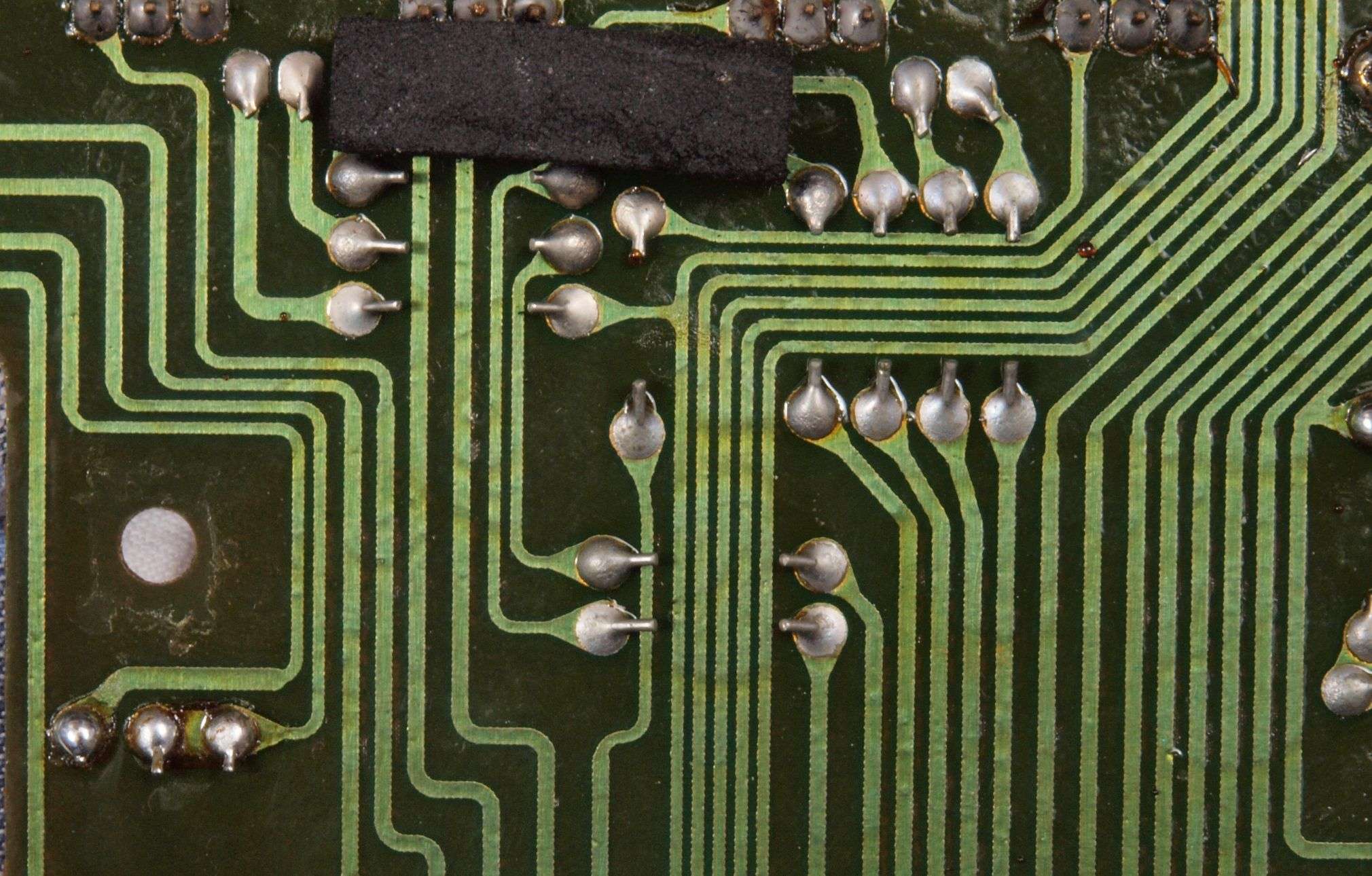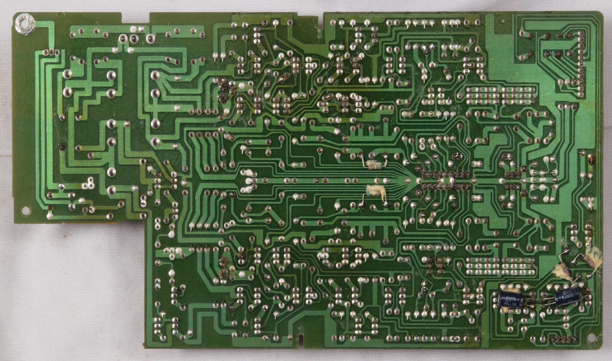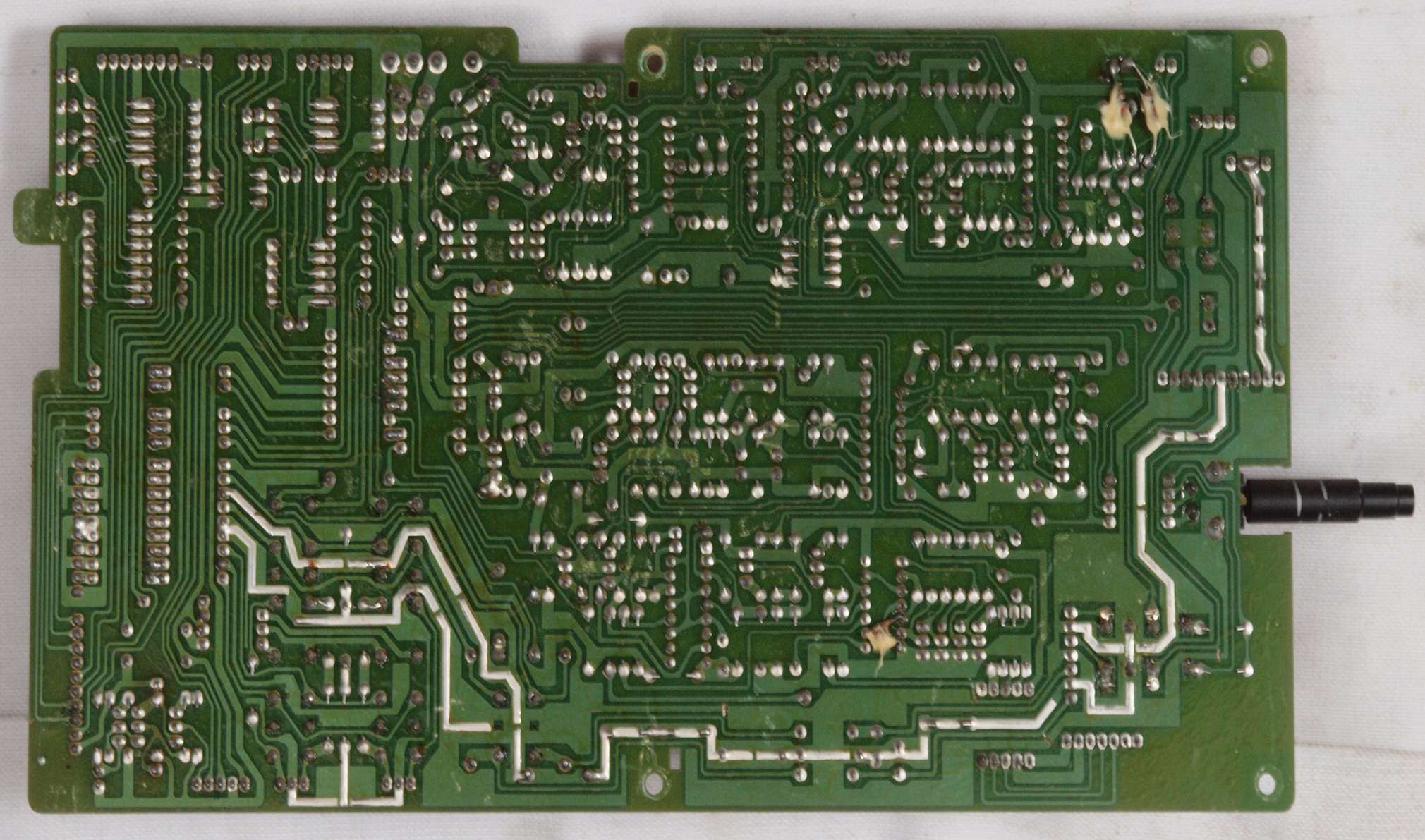P5. 修理(半田補正)後 電源部基板裏。 半田を全部やり直す。