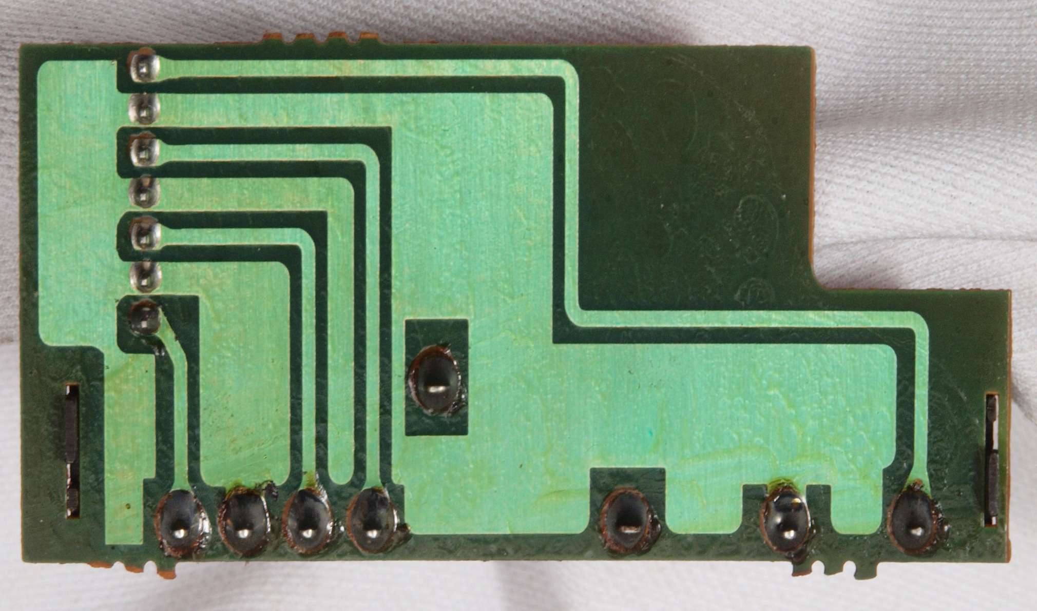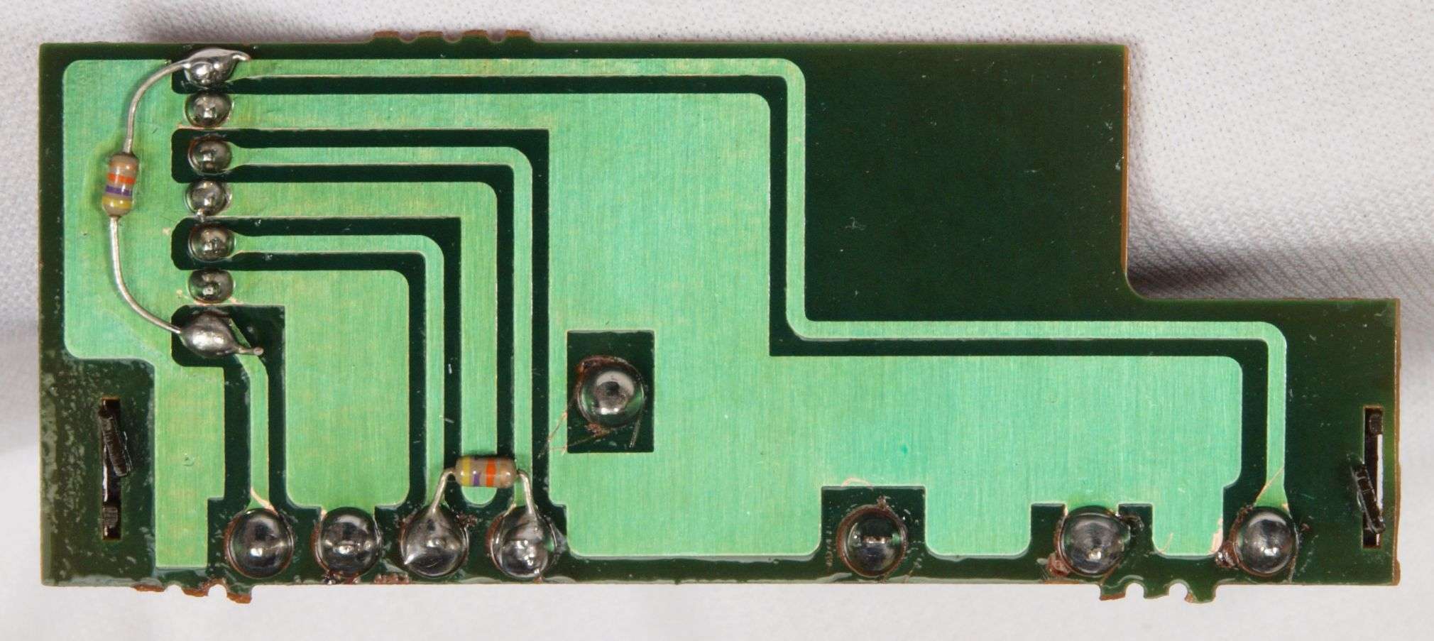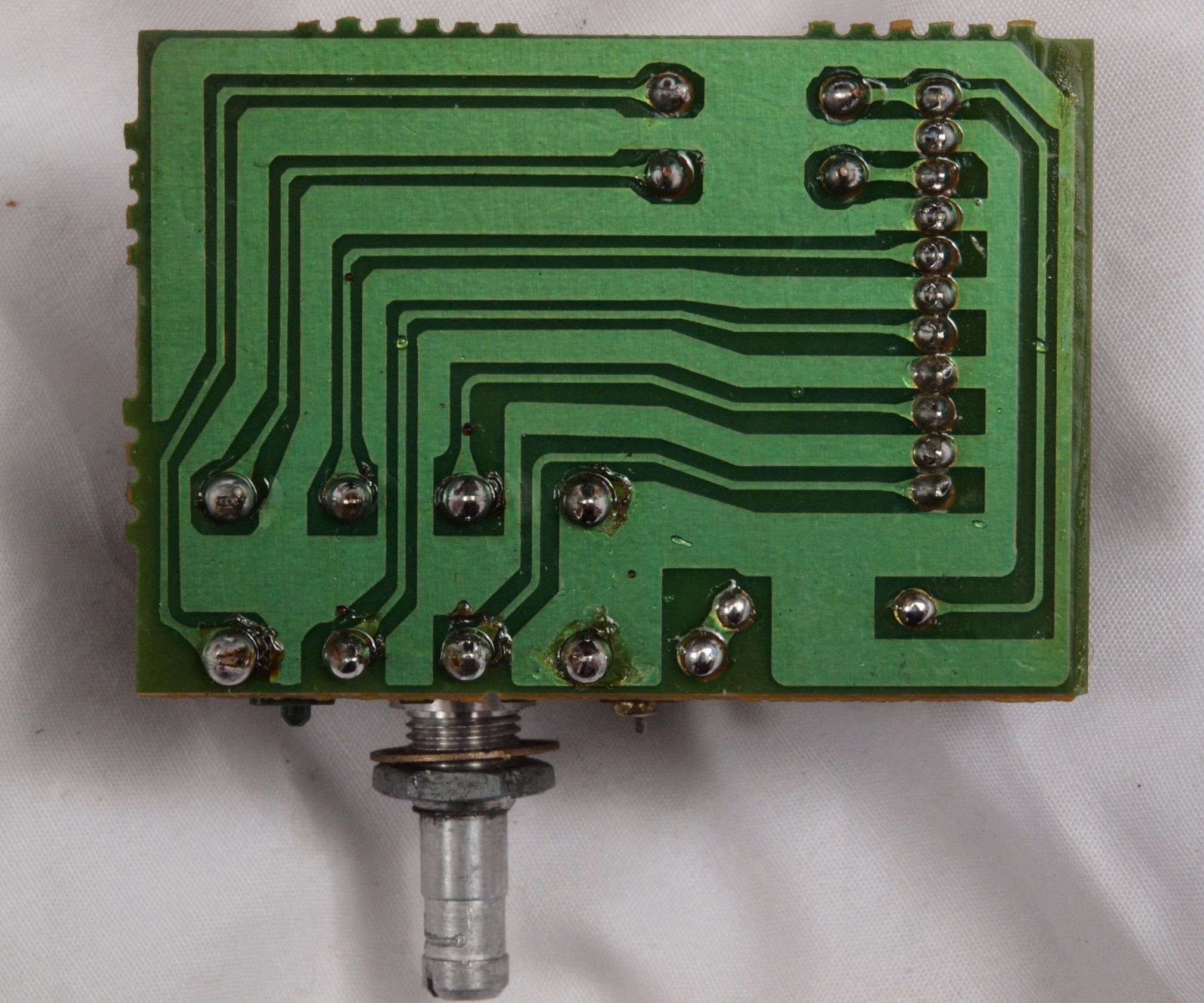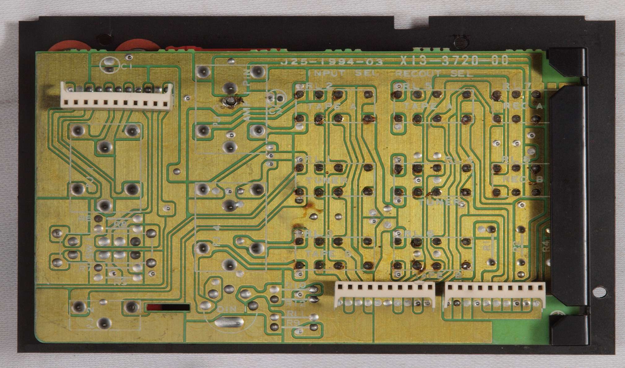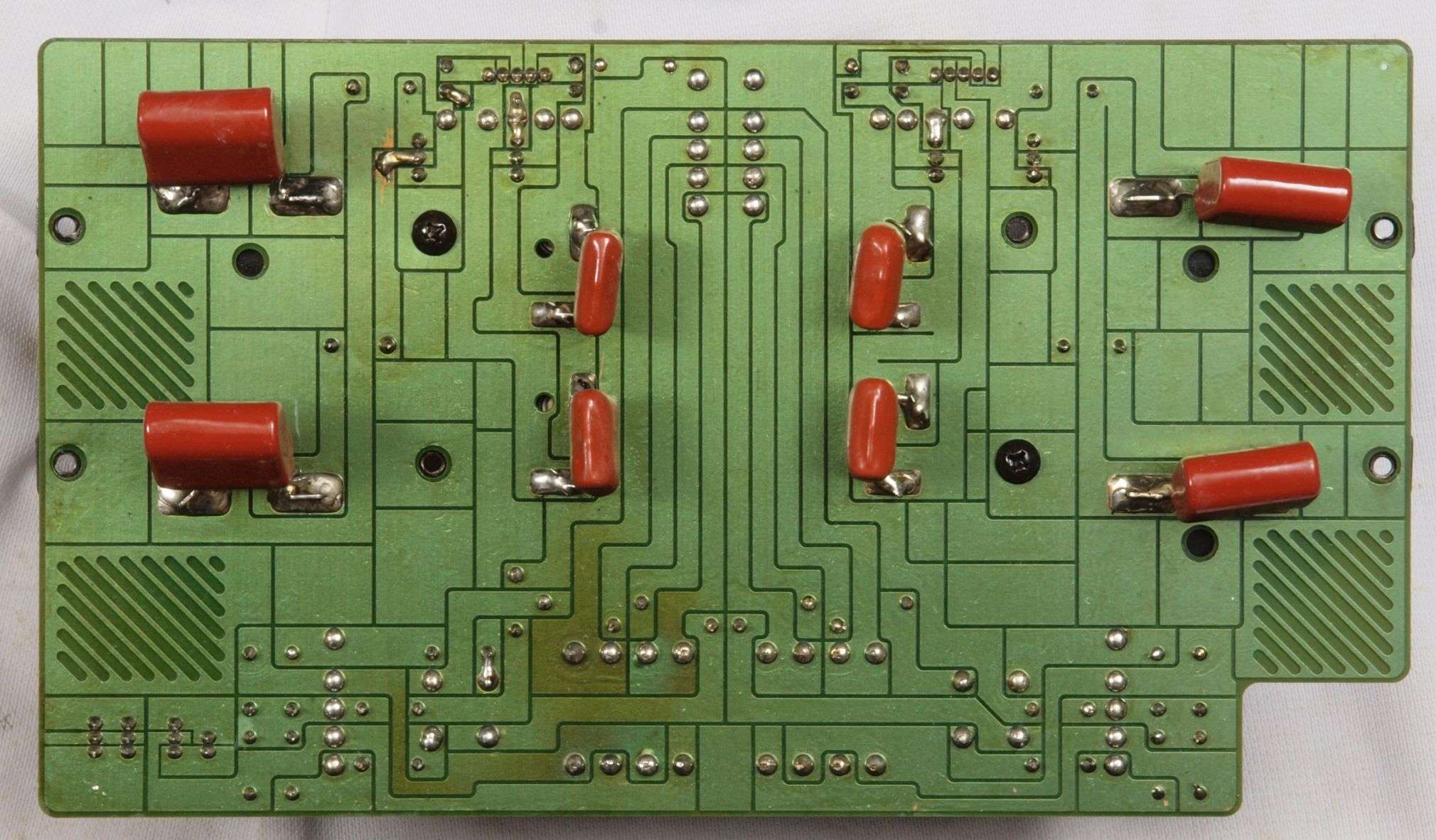 C24. 修理(半田補正)後 終段・プロテクト基板裏。 半田を全部やり直す。
