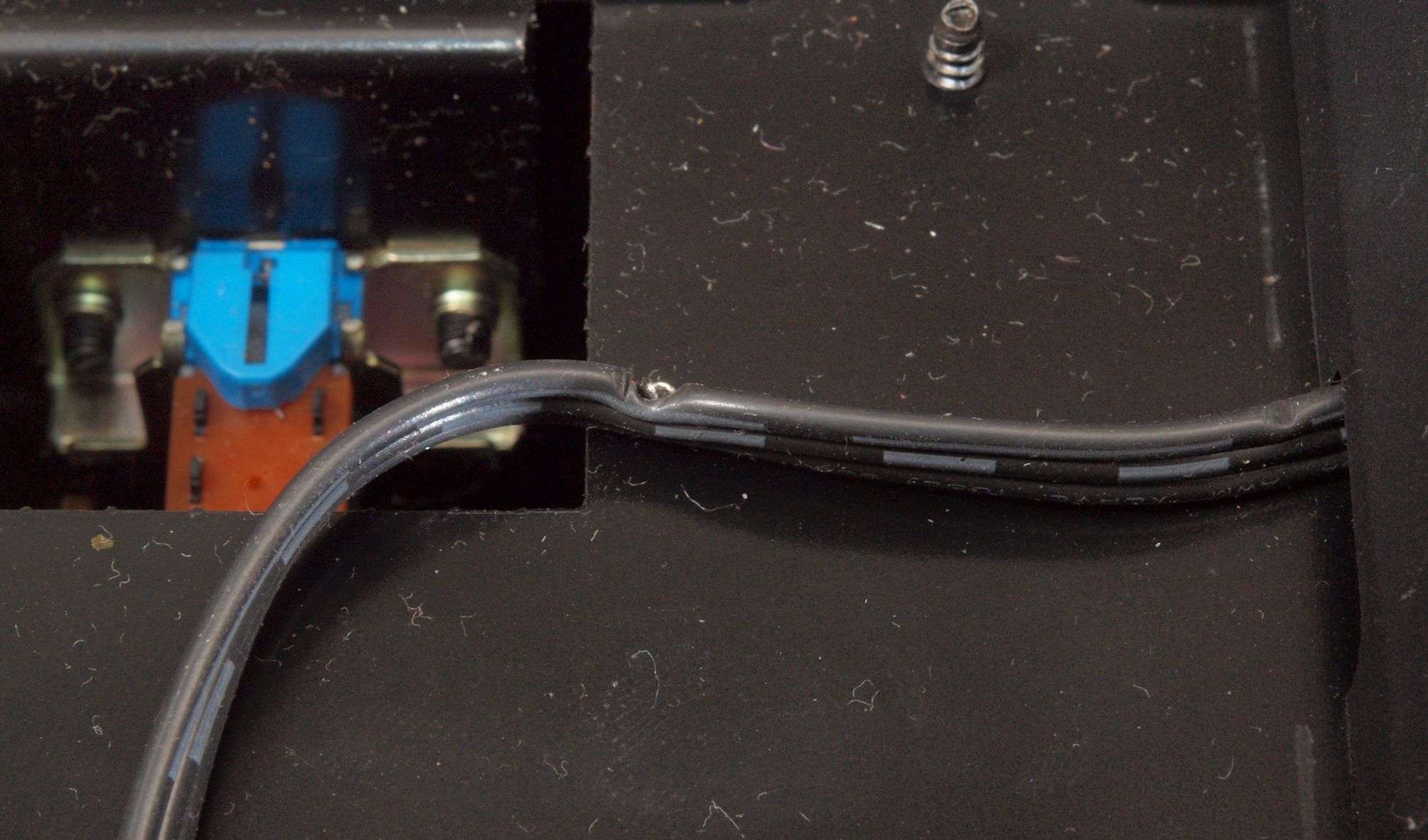 A253. 点検中 下から見る。 イヤホーン出力ケーブルを押しつぶしている。