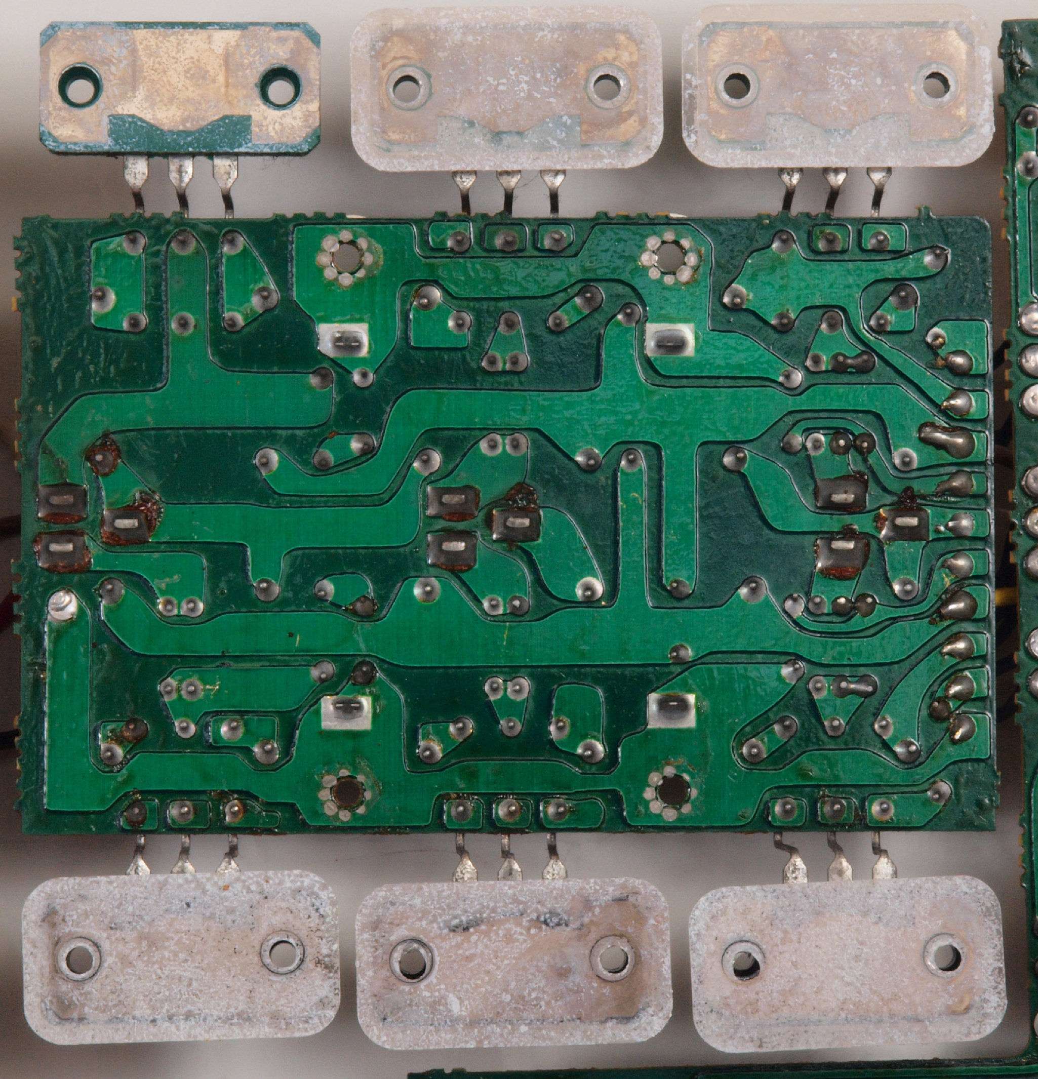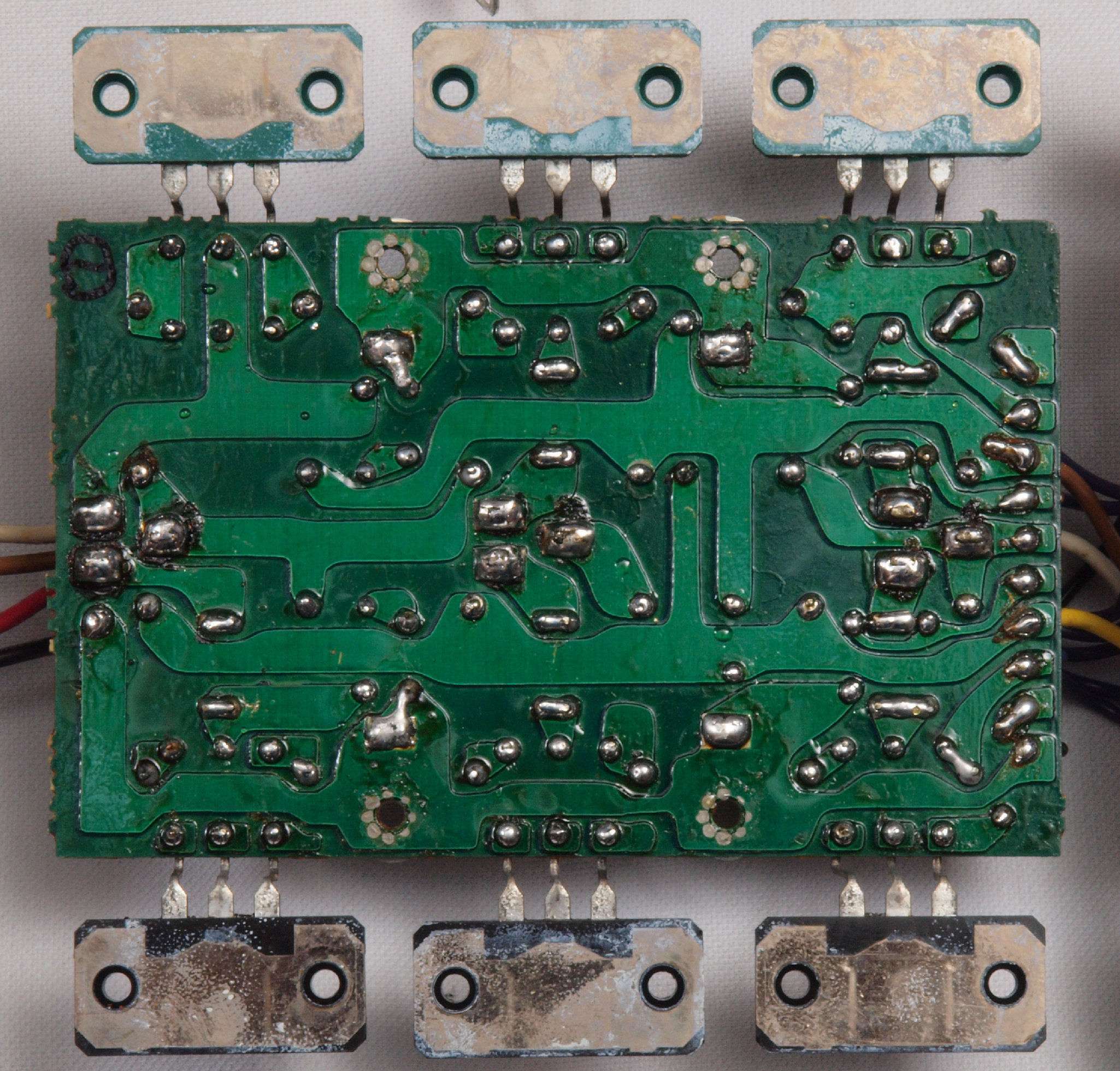 | C112. 修理中 +側終段基板。 終段TR(トランジスター)のマイカー板の放熱シリコンが少ない。 | ||||||||||||||||||||||||||||||||||||||