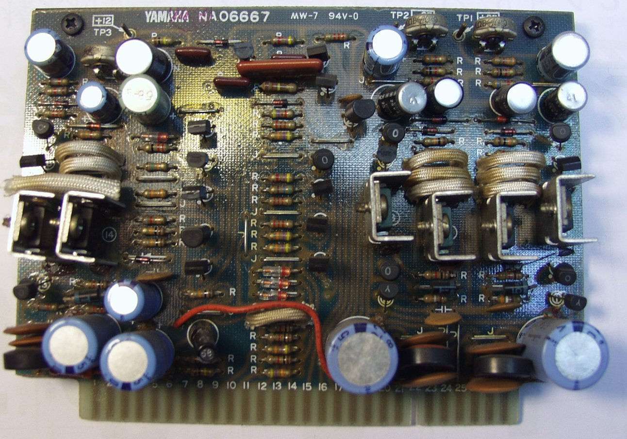 | C2B. 修理後 R側ドライブ基盤 半固定VR4個、電解コンデンサー3個、フィルムコンデンサー7個交換 | ||||||||||||||||||||||||||||||||||||||||||||||||||||