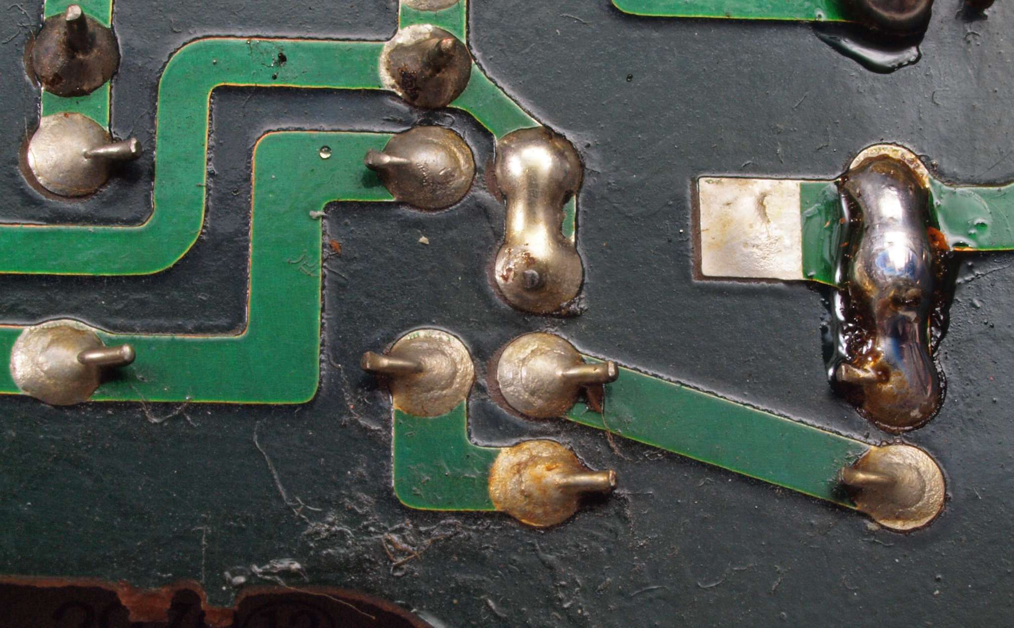 C532. 修理中 R側プリアンプ基板裏。 半田不良予備郡。