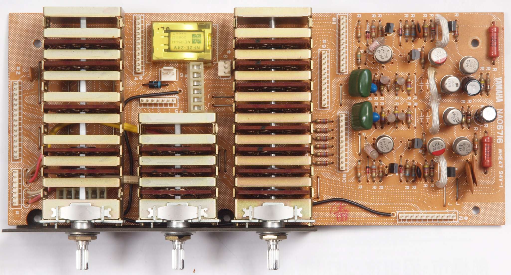 C72.修理後 ToneAMP基板。 V−FET2個、FET(電界効果トランジスター)8個、半固定VR2個、電解コンデンサ−6個、フイルムコンデンサー8個交換