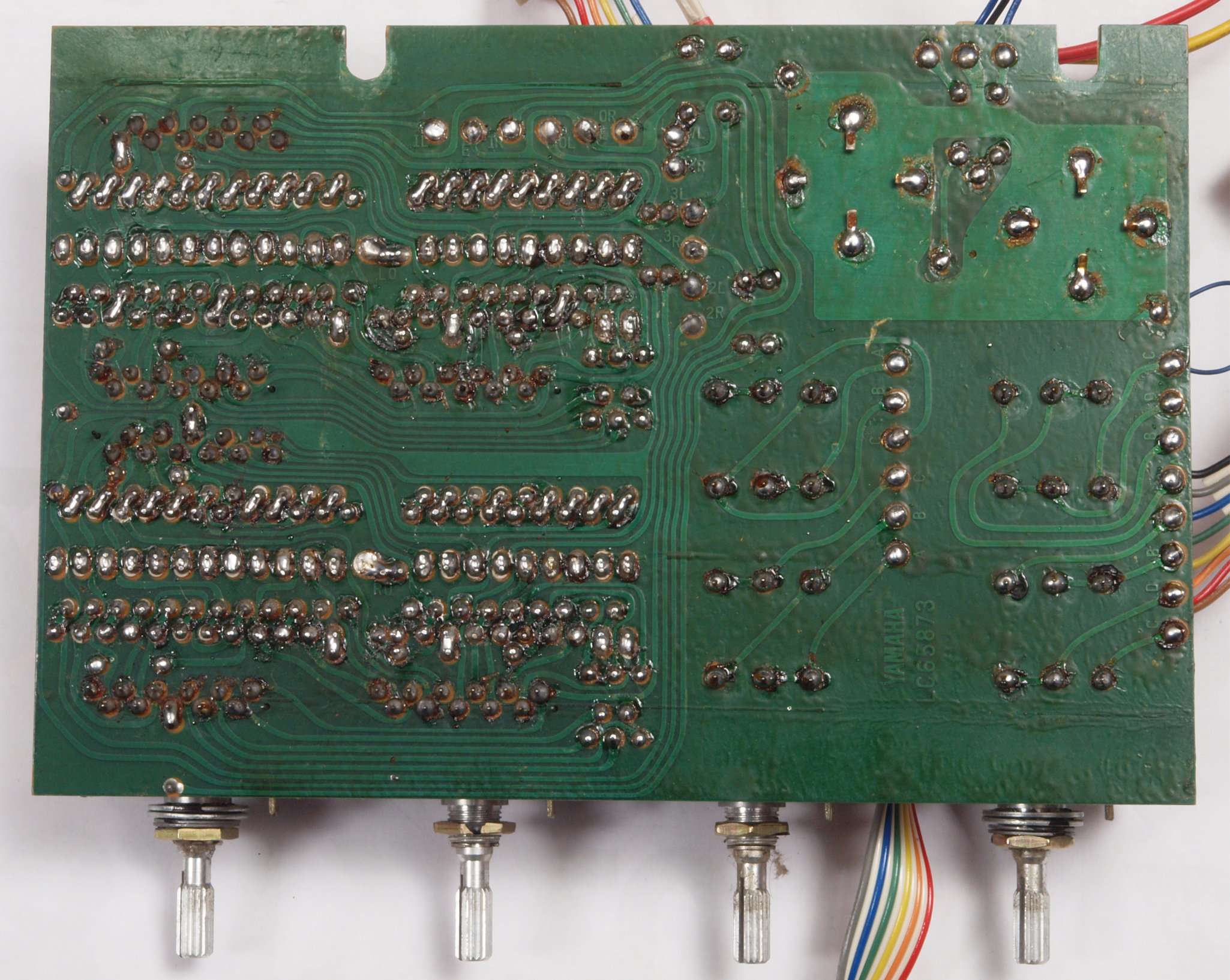 C24.修理(半田補正)後 EqualizerAMP基板裏。 全半田やり直しする