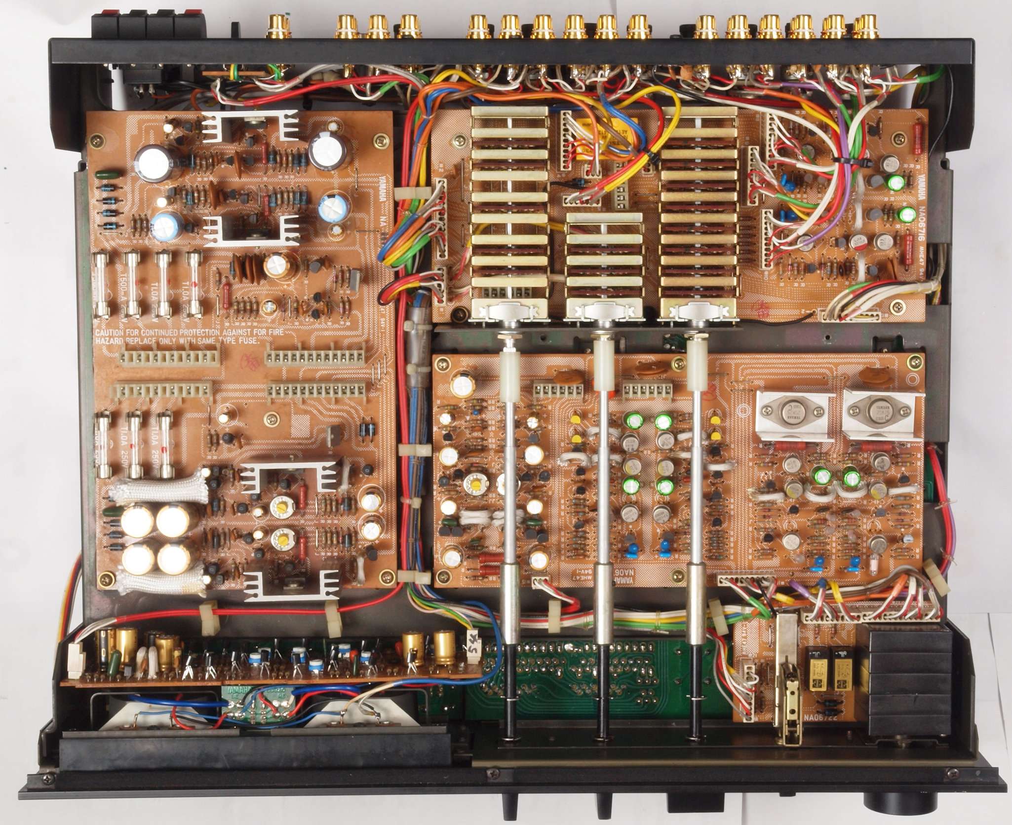 A52. 点検中 出力RCA端子郡。 テフロン絶縁RCA端子に交換。 WBT−0201は定価で工賃込み。