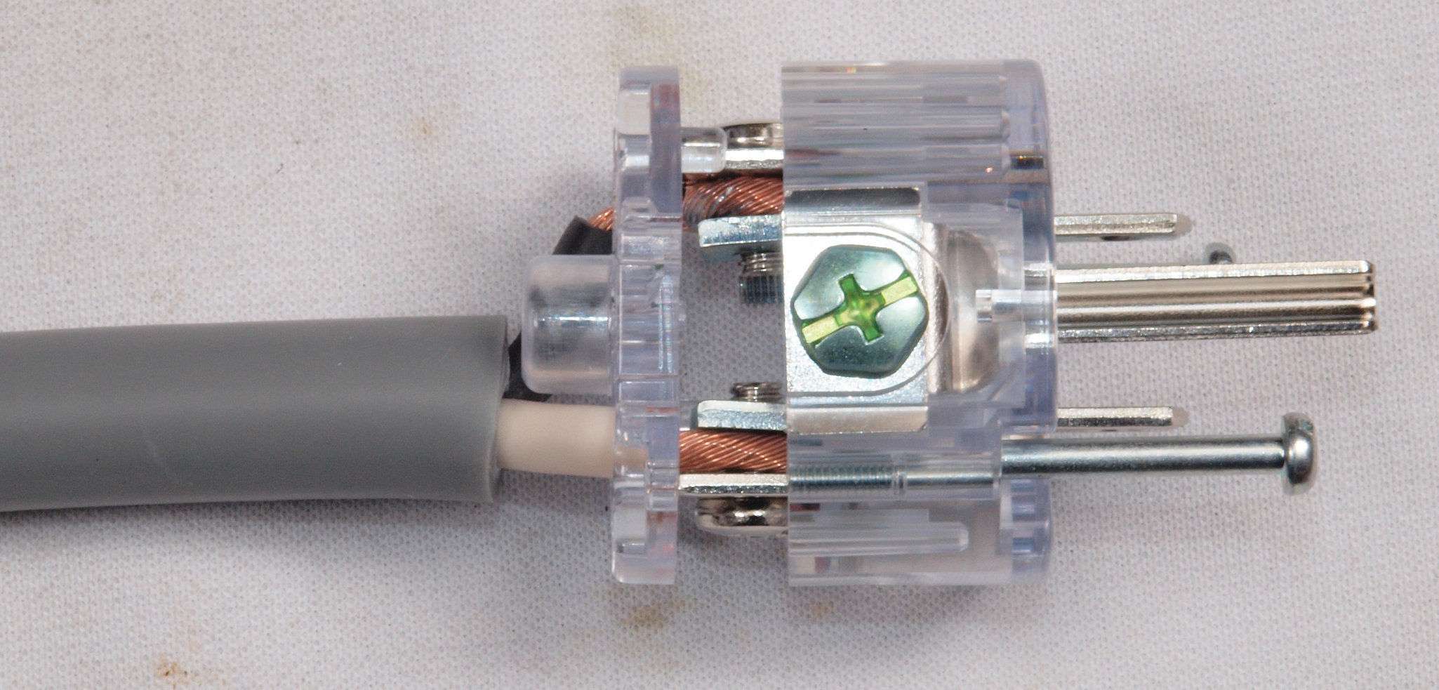 | CF6. 完成 3Pプラグにケーブル取り付、反対側。 奥までしっかり芯線が入っている。 | ||||||||||||||||||||||||||||||||||||||||||||||||||||
