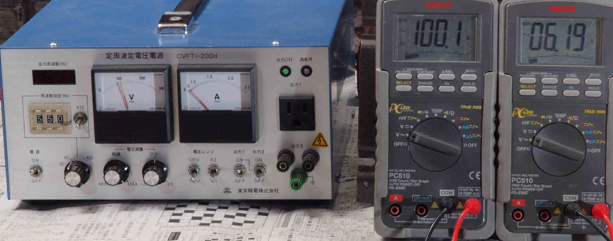 | P1. 60Hz/AC100を入力、入力電流=0.6A、無負荷損電力=60W。出力ヒーター電圧=6.19V。 | ||||||||||||||||||||||||||