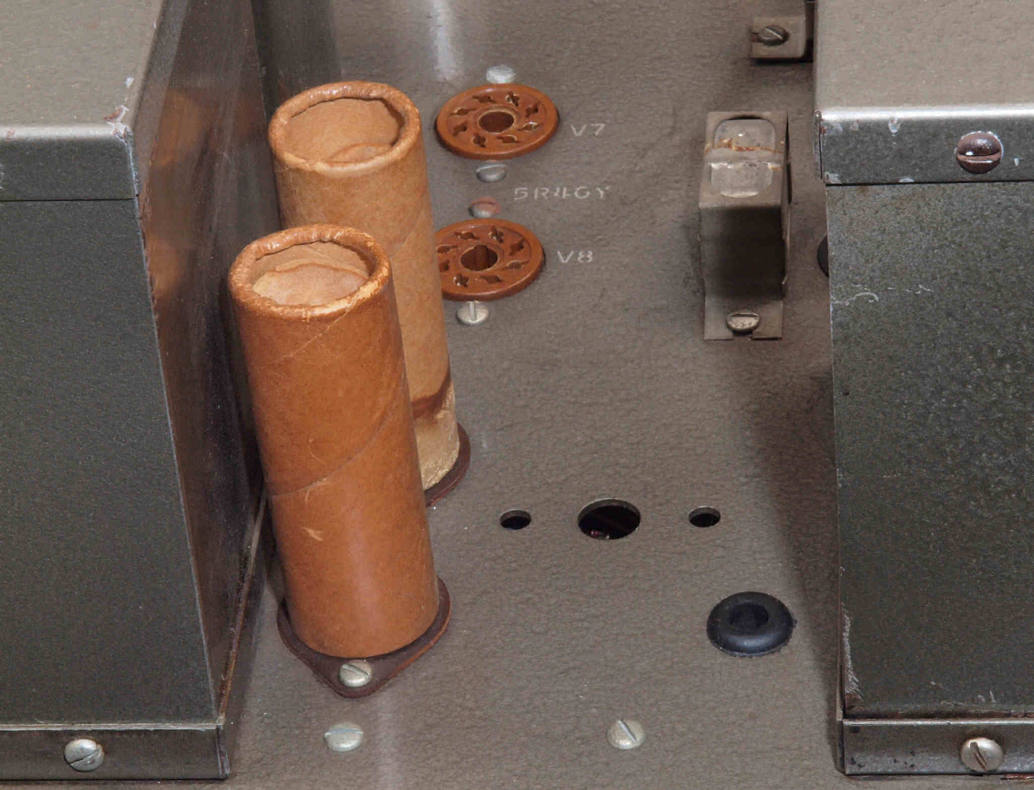 | A22. 点検中 後から見る。 飾りのバイアス電源の純正のマロイ電解コンデンサー。 | ||||||||||||||||||||||||||