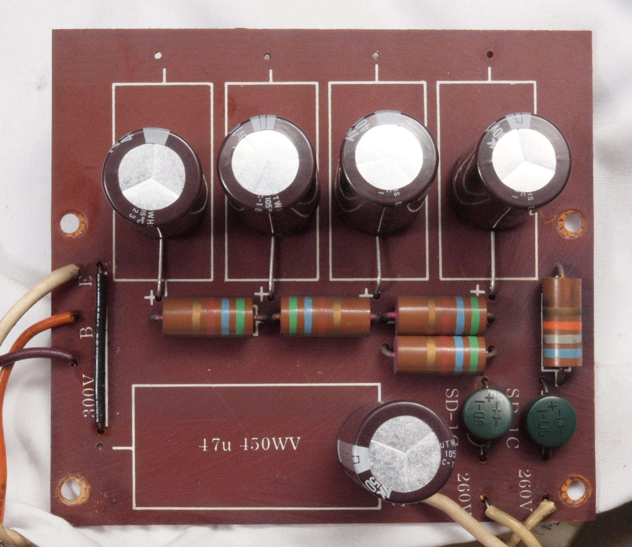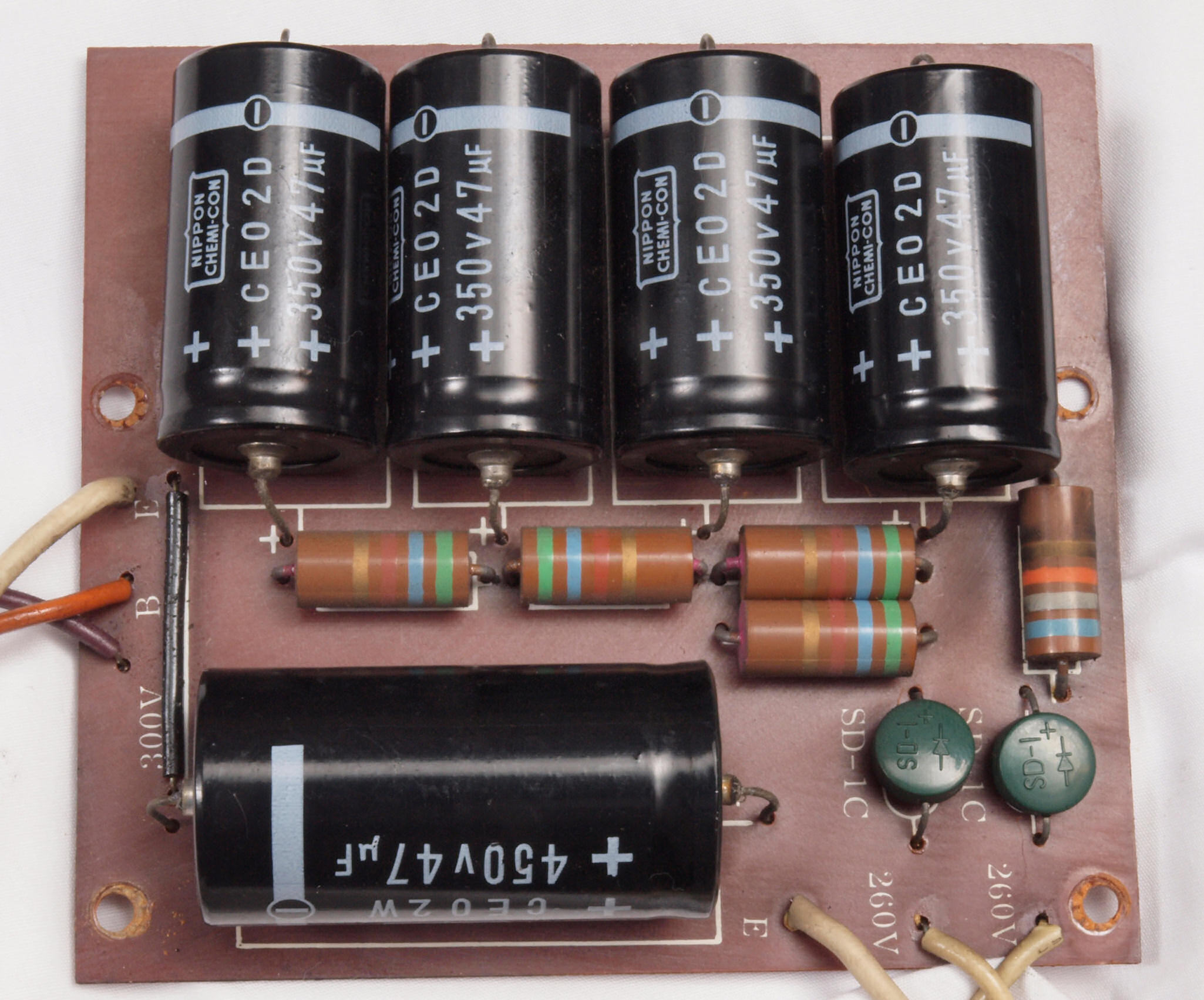 CA2. 修理後 ヒーター電源整流基板。電解コンデンサー4本増量交換。