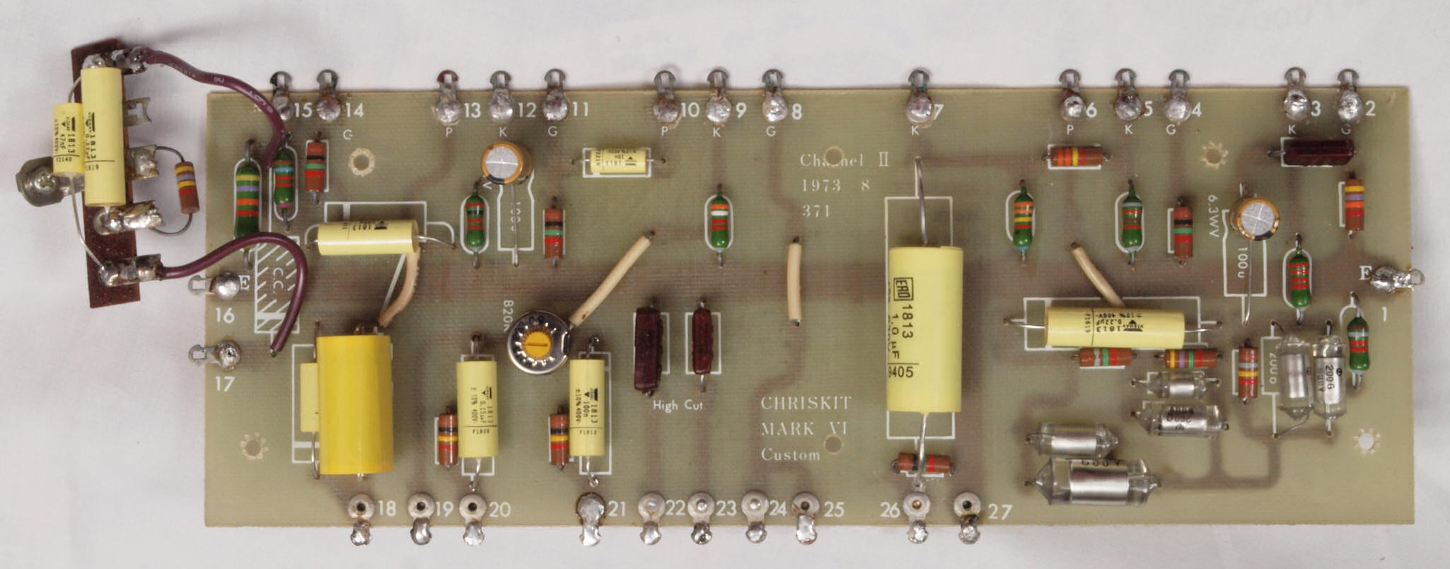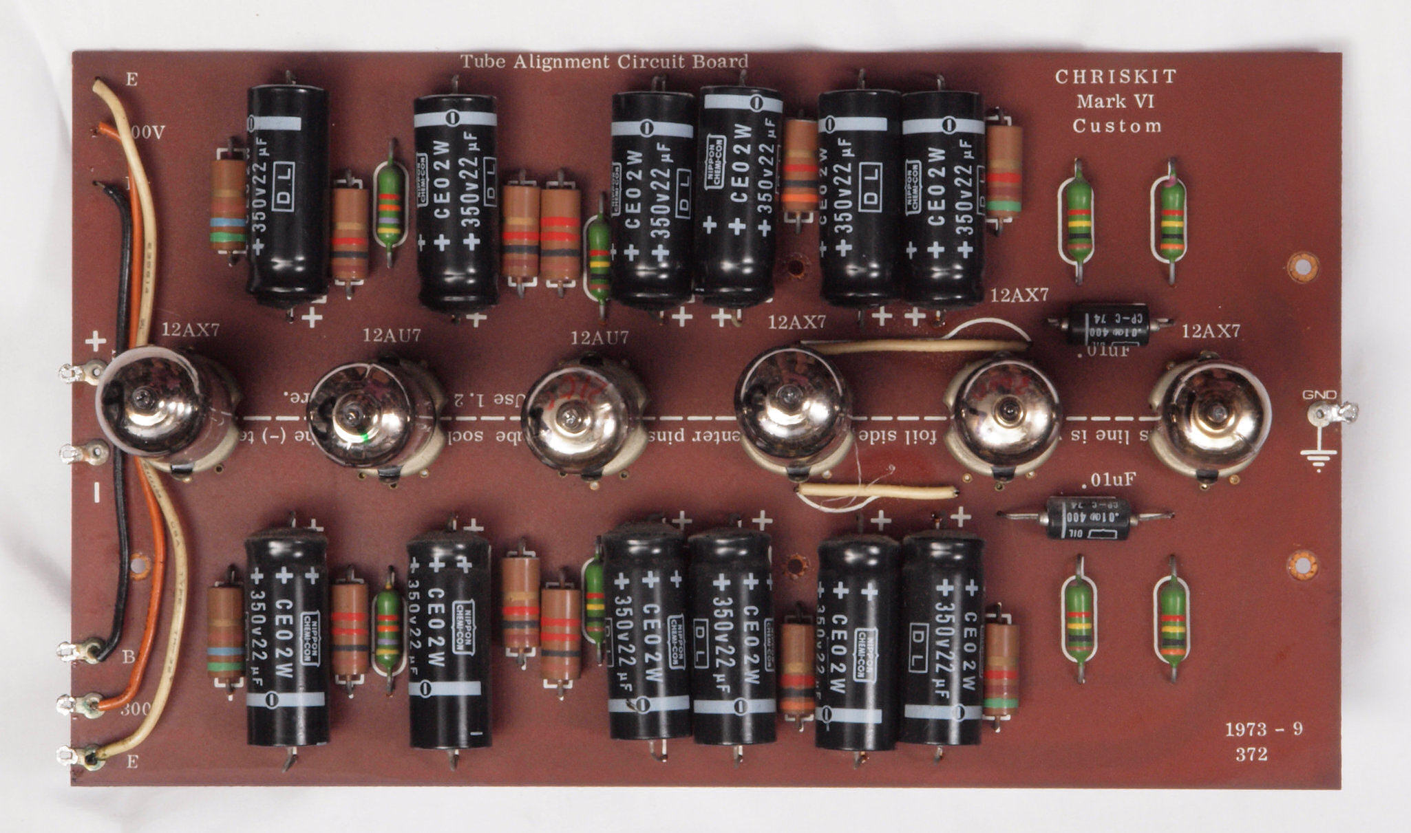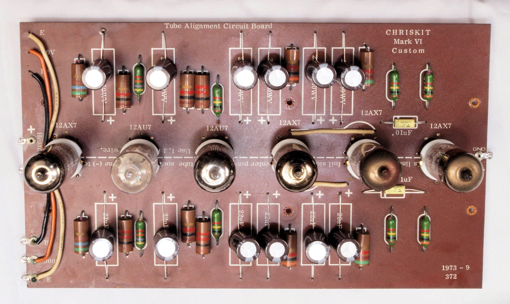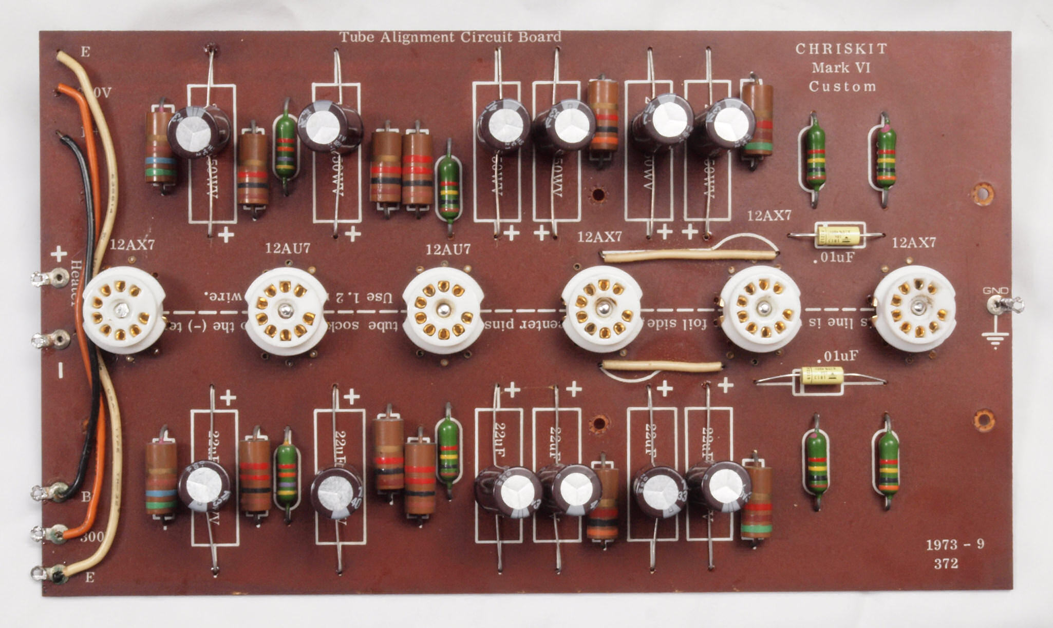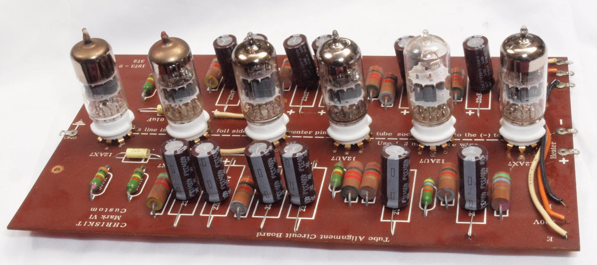 C32. 修理中 真空管基板。 真空管ソケットの固定には空気管等を挿して行う。