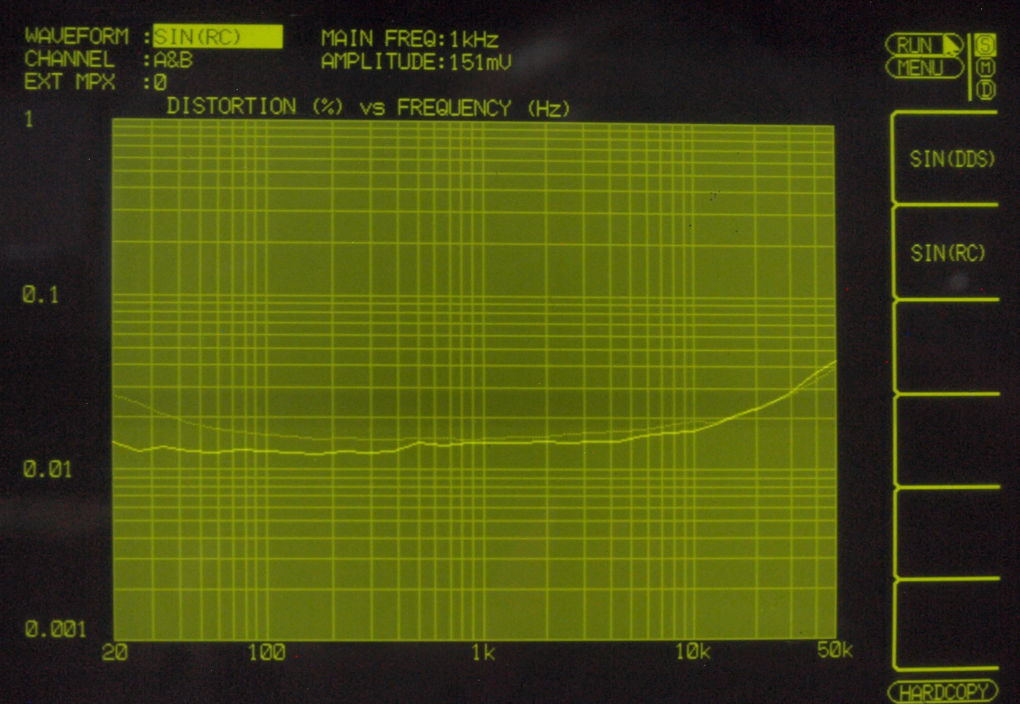 F0. 下のオーディオアナライザーVP−7732Aで自動測定。