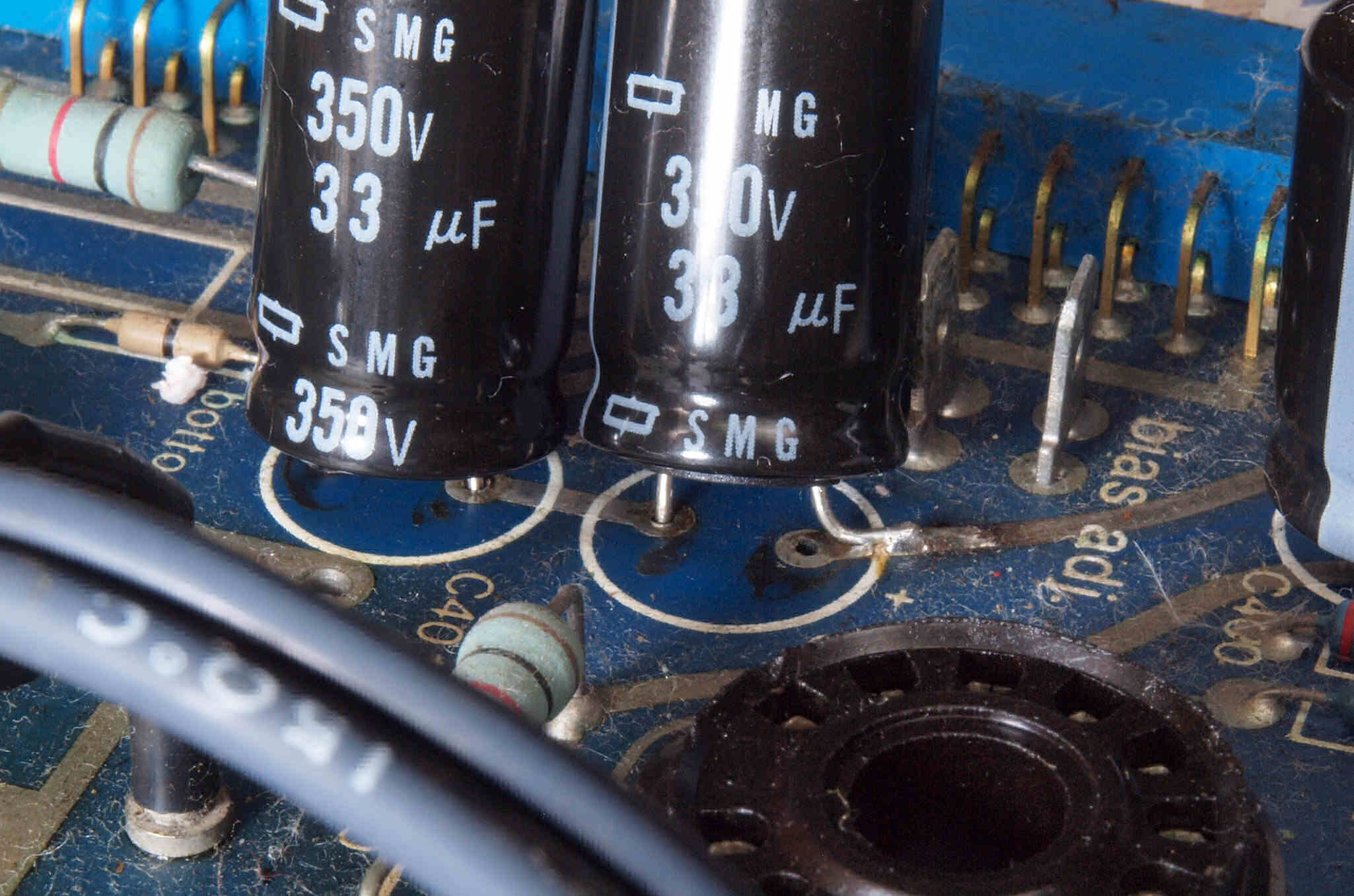 | C1B2. 修理中 終段6LF6基板。6LF6のプレートキャップ。半田の乗りが少ない? | ||||||||||||||||||||||
