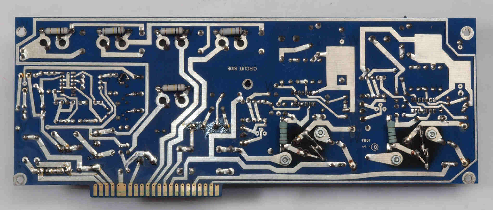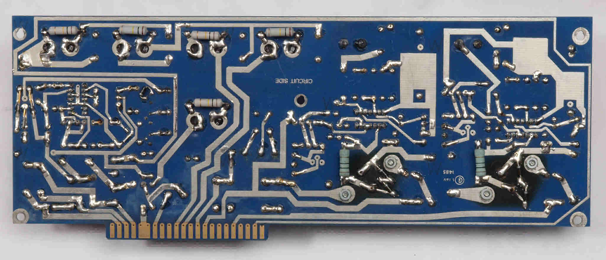 | C114. 修理中 終段6LF6基板。エッジコネクターの裏の接点復活材跡 | ||||||||||||||||||||||