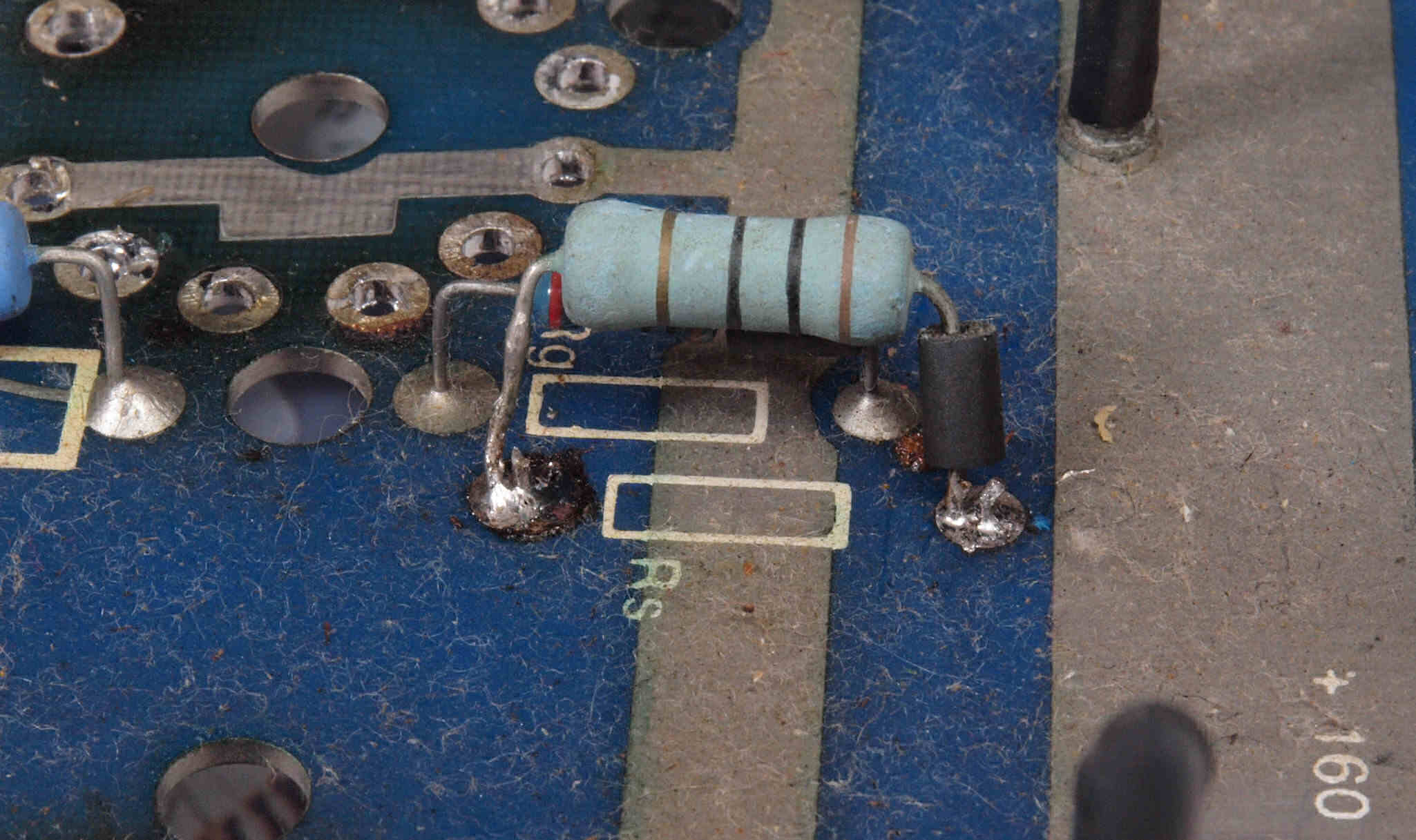 | C362. 修理中 電源基板裏。基板端子に緑青が発生している。 | ||||||||||||||||||||||