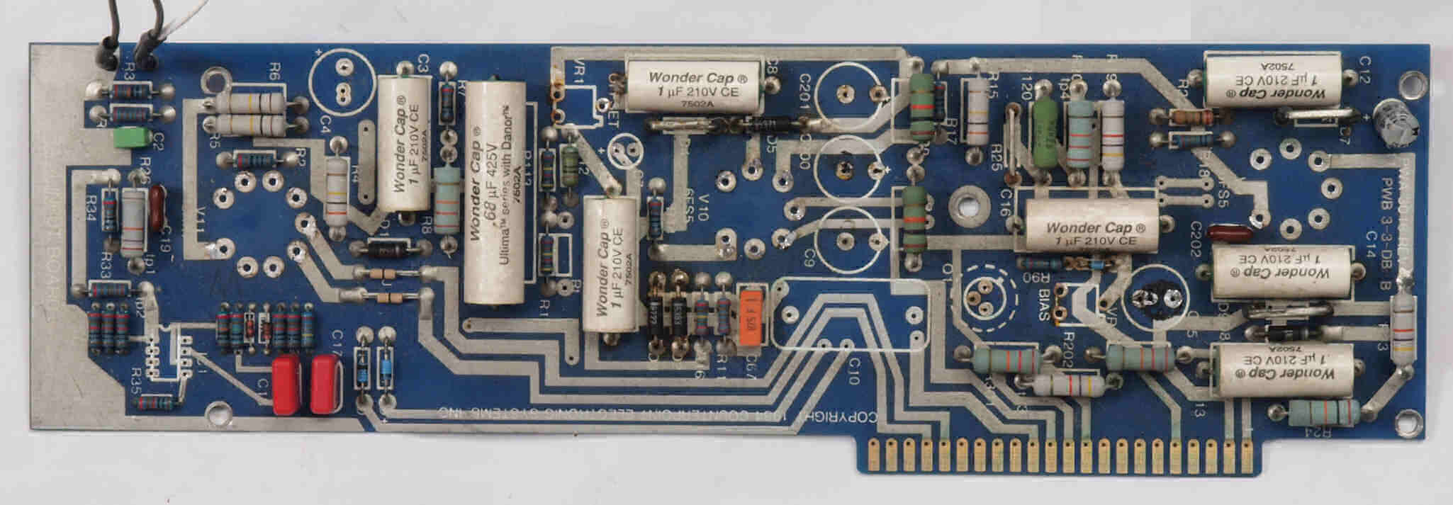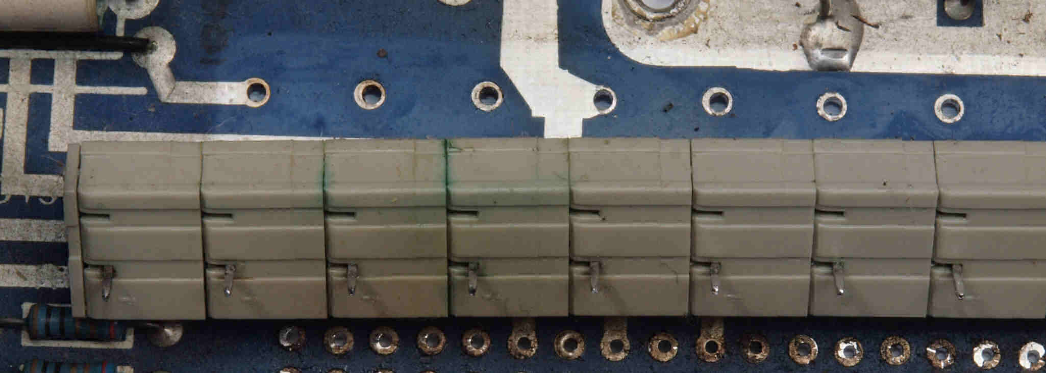 | C212. 修理中 入力・ドライブ基板。基板端子に緑青が発生している。 | ||||||||||||||||||||||