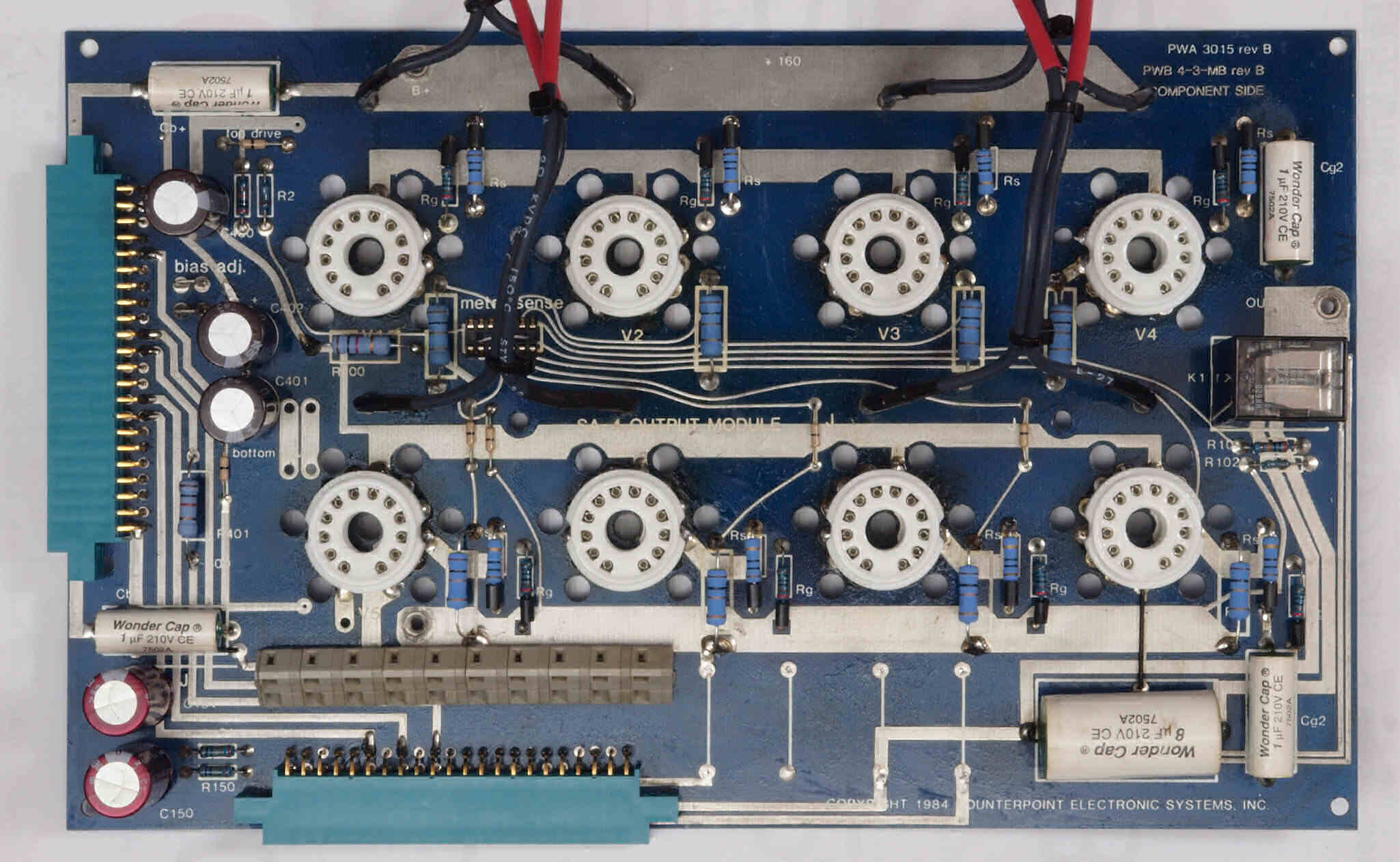 C14. 修理後 終段6LF6基板。 電解コンデンサー5個、タイト製コンパクトロン12ピンソケット8個、抵抗14個、リレー1個、OP-AMPソケット1個、カードエッジコネクター2個交換。